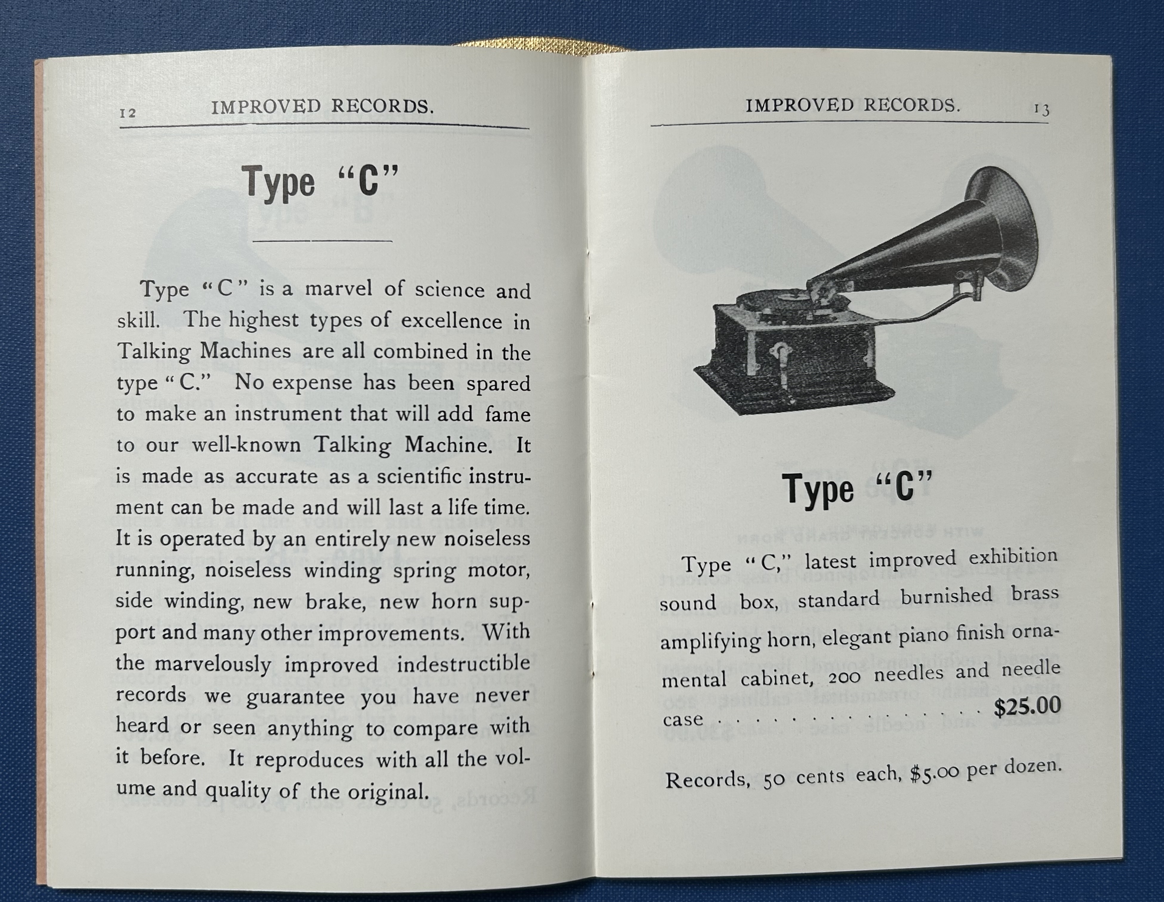 Interesting that the Improved Gramophone catalog shows a Victor R in the pictures as the Type C. And with a new noiseless motor and improved indestructible records.