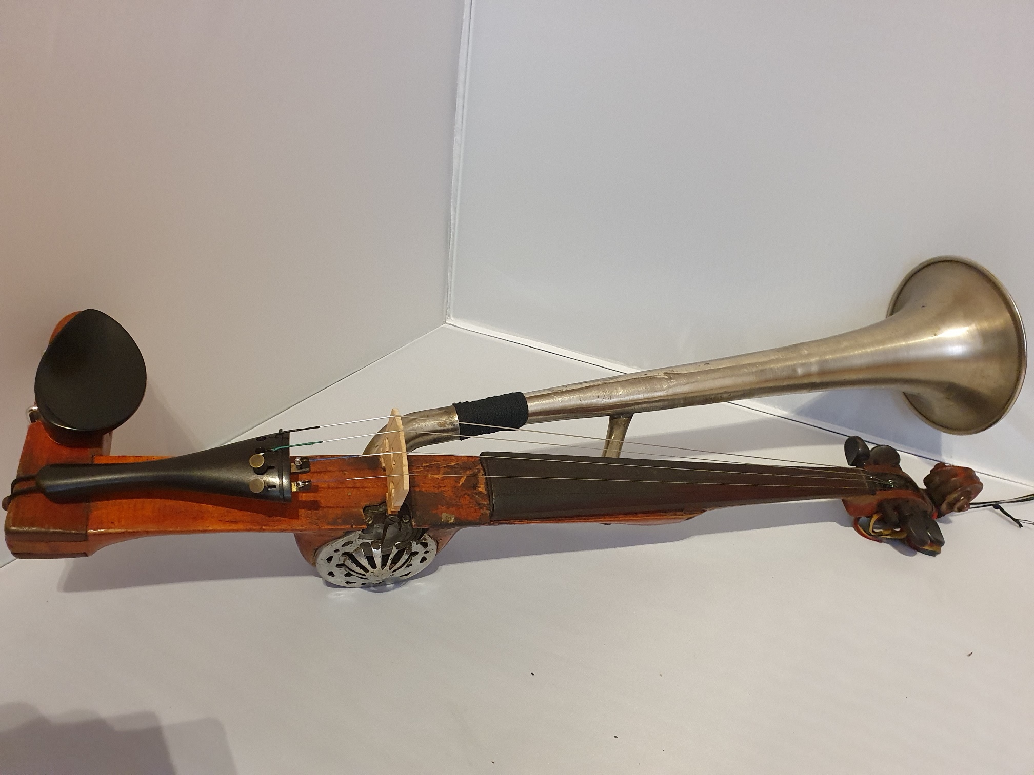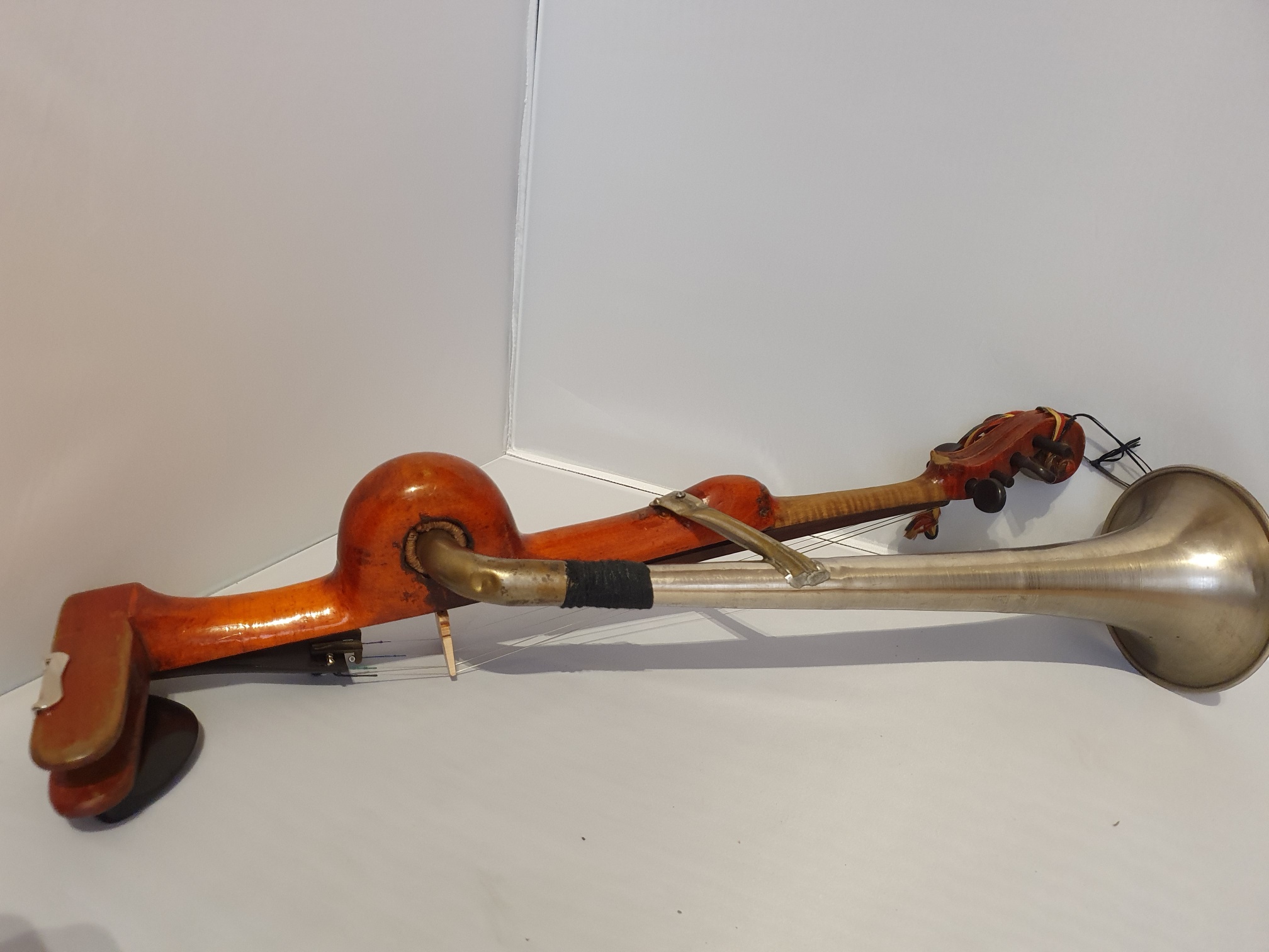 The use of a talking machine like sound box (or similar technology) on a violin is not unique.