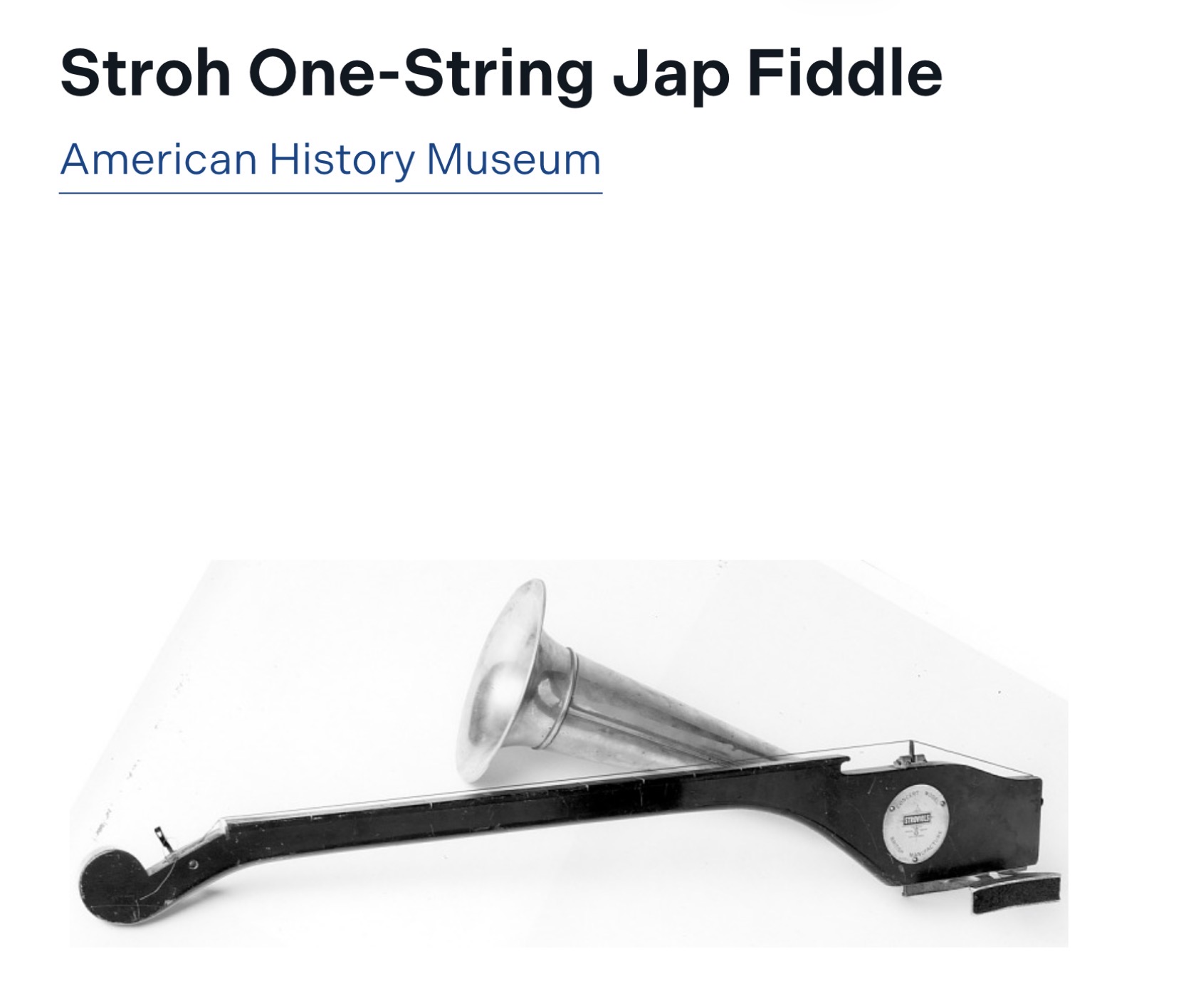 Very interesting indeed.MarkELynch wrote: Sun Nov 16, 2025 10:20 pm What you have is a Stroh ‘Jap Fiddle’. I have a collection of musical instruments and have both a dual bell Stroh Violin and also one of these one-string Jap Fiddles. It is played by holding it cello-style between the knees and bowed across the single string. The Jap Fiddle was apparently so popular that it was produced in three different sizes.