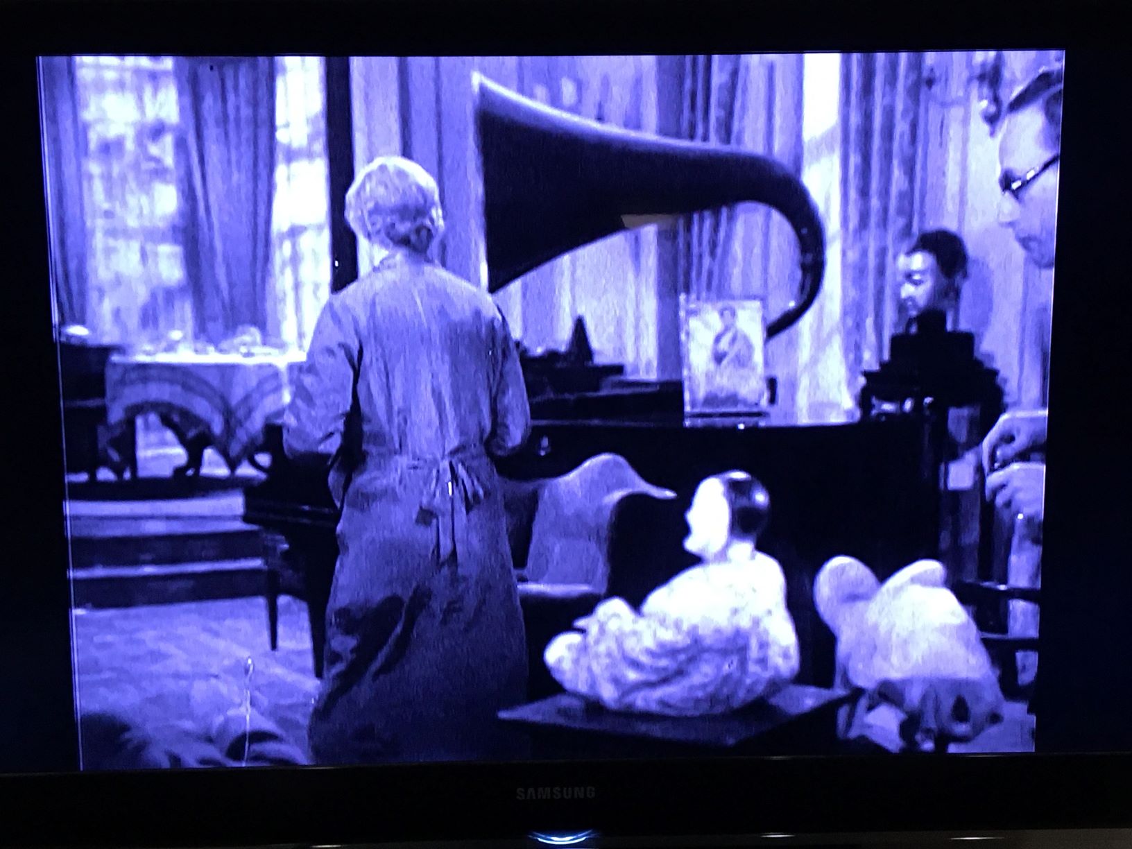 There are several scenes featuring two phonographs. First, the scenes in Alva's parents' home in Dobson, where there is a victrola standing against a wall in the Parlor. Later, the scenes in Owen's house in New Orleans, where there's a tabletop possibly Columbia, seems like a viva tonal model...