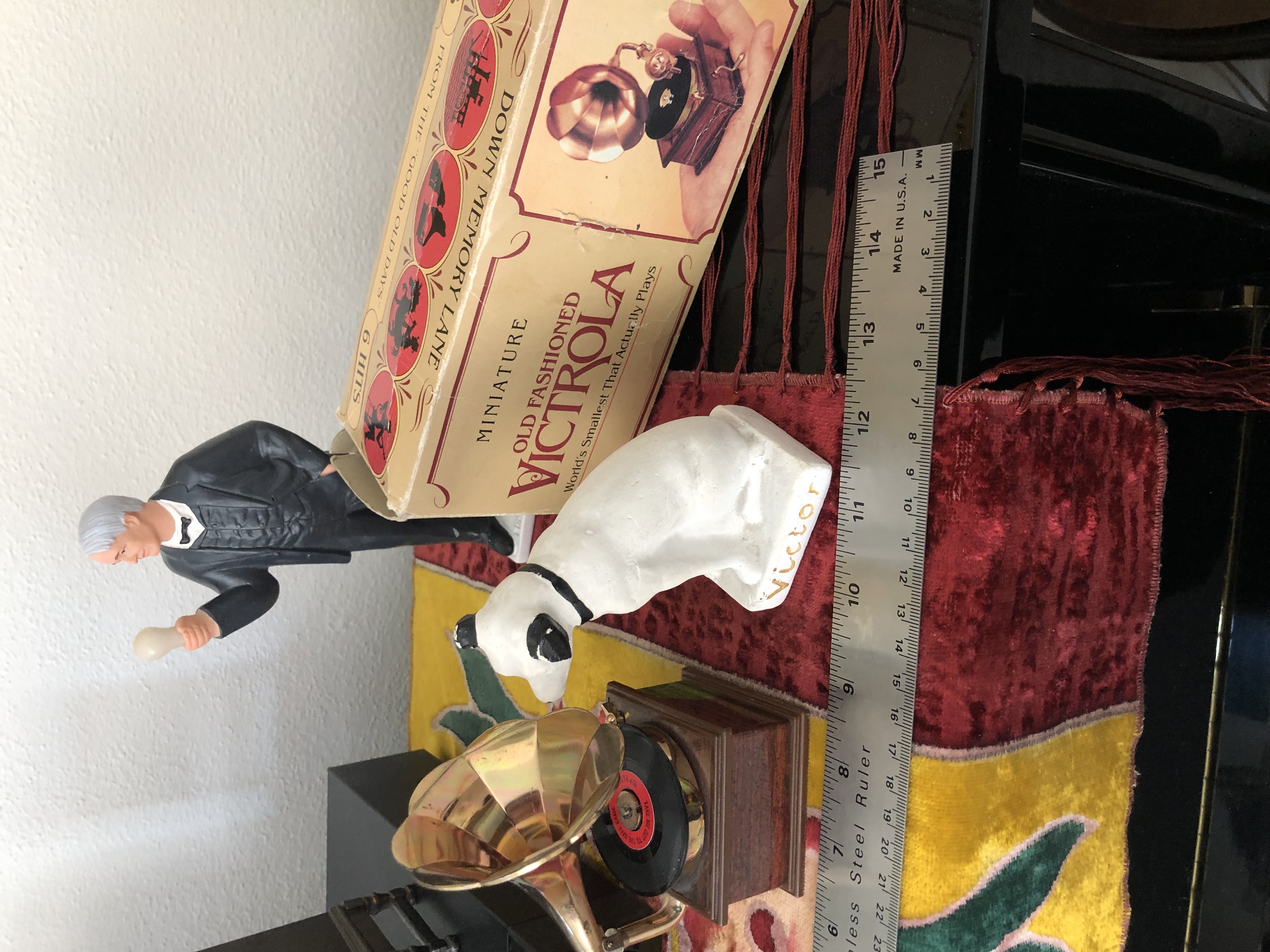 Miniature Old Fashioned Victrola - World's Smallest That Actually Plays. 6 Hits (records).