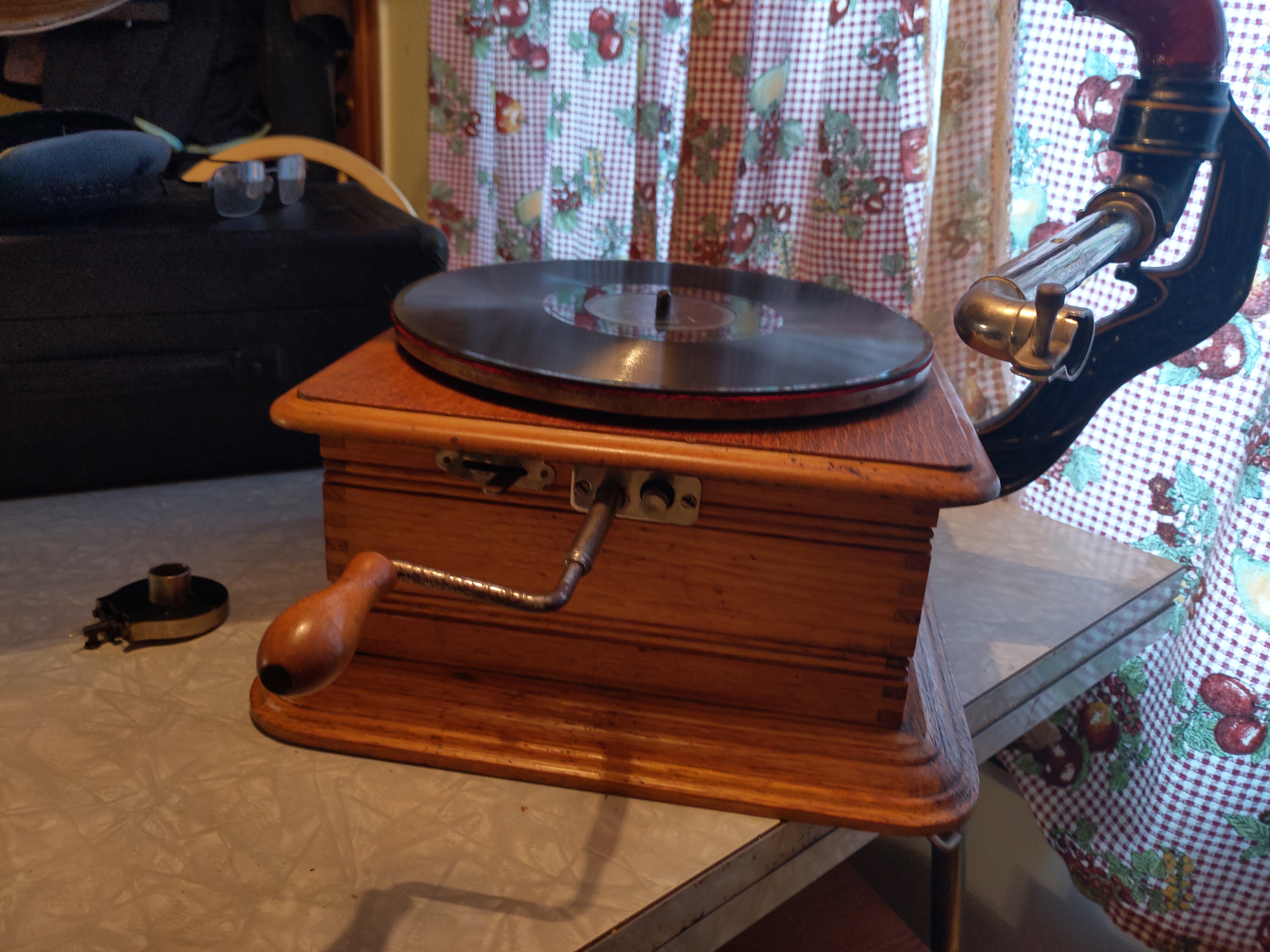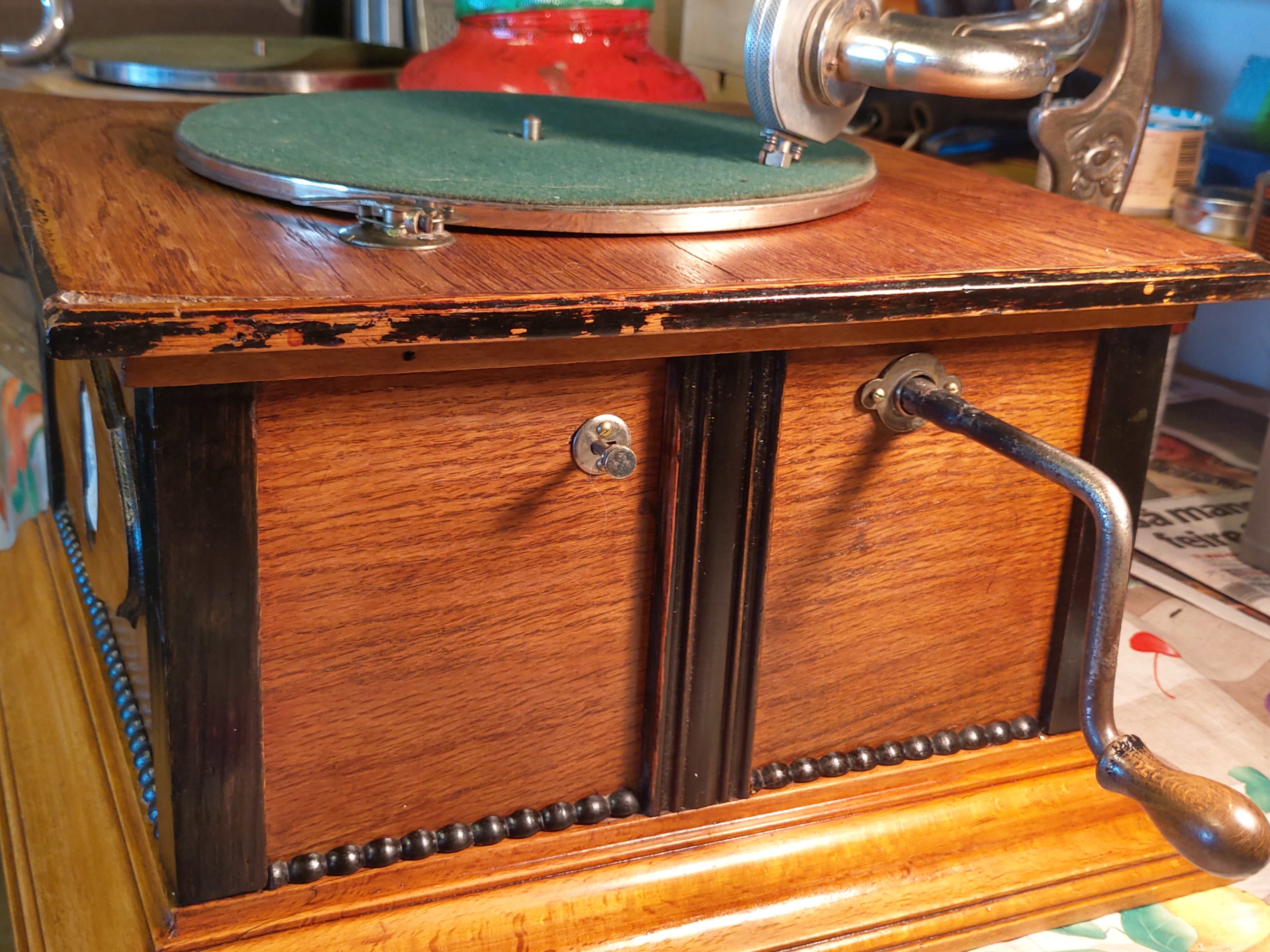 It has an original blue Excelsior soundbox. I still have no experience with servicing soundboxes, this is something I have always postponed, since I have quite