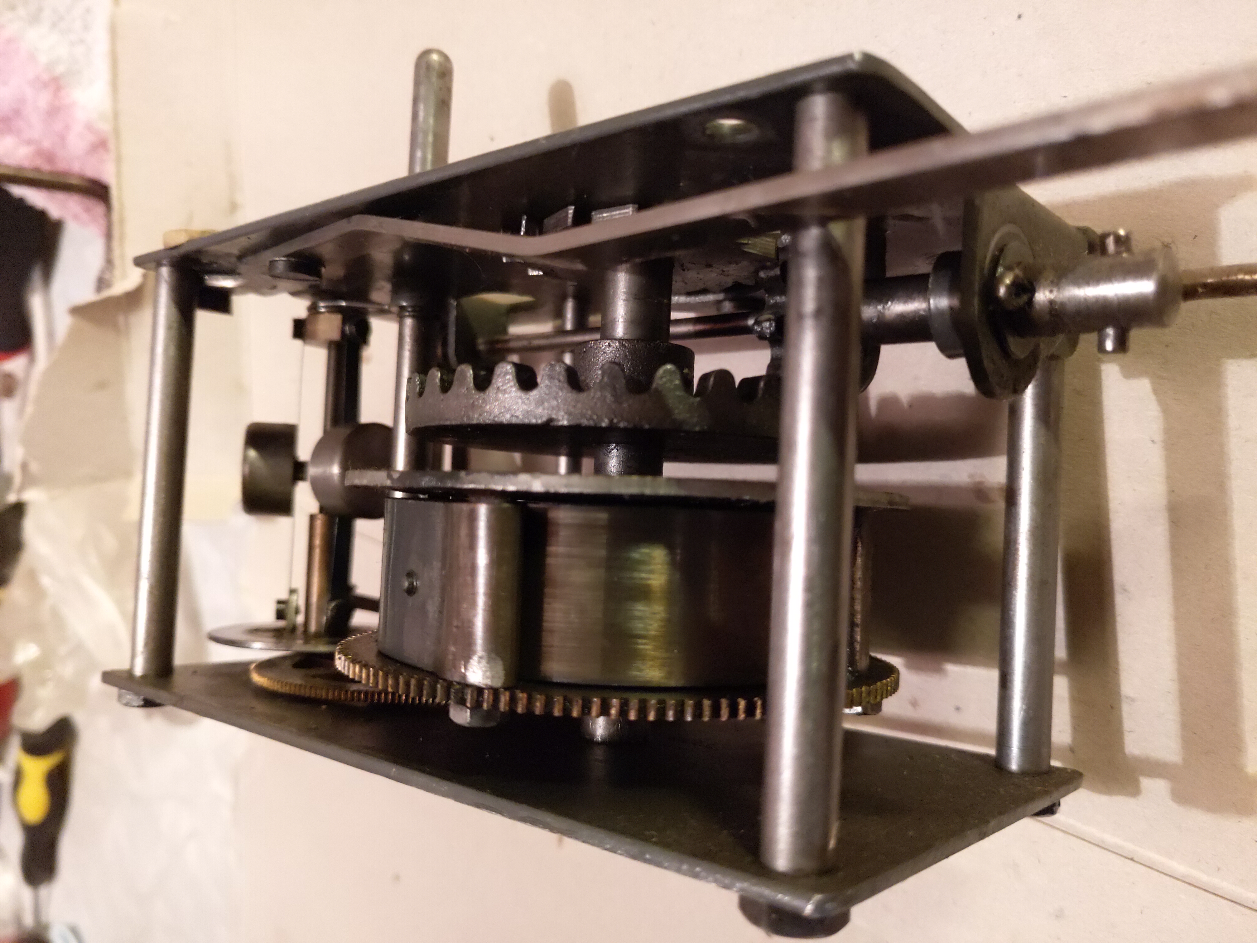 The Steidinger double spring motor runs noiselessly, it is one of the most quiet running motor I have seen in an external horn gramophone. I did not need to do much with it, really. I think it has been serviced one time during the last decades, since the grease in the motor was very soft. I just added some grease to the gears and some oil to other parts.