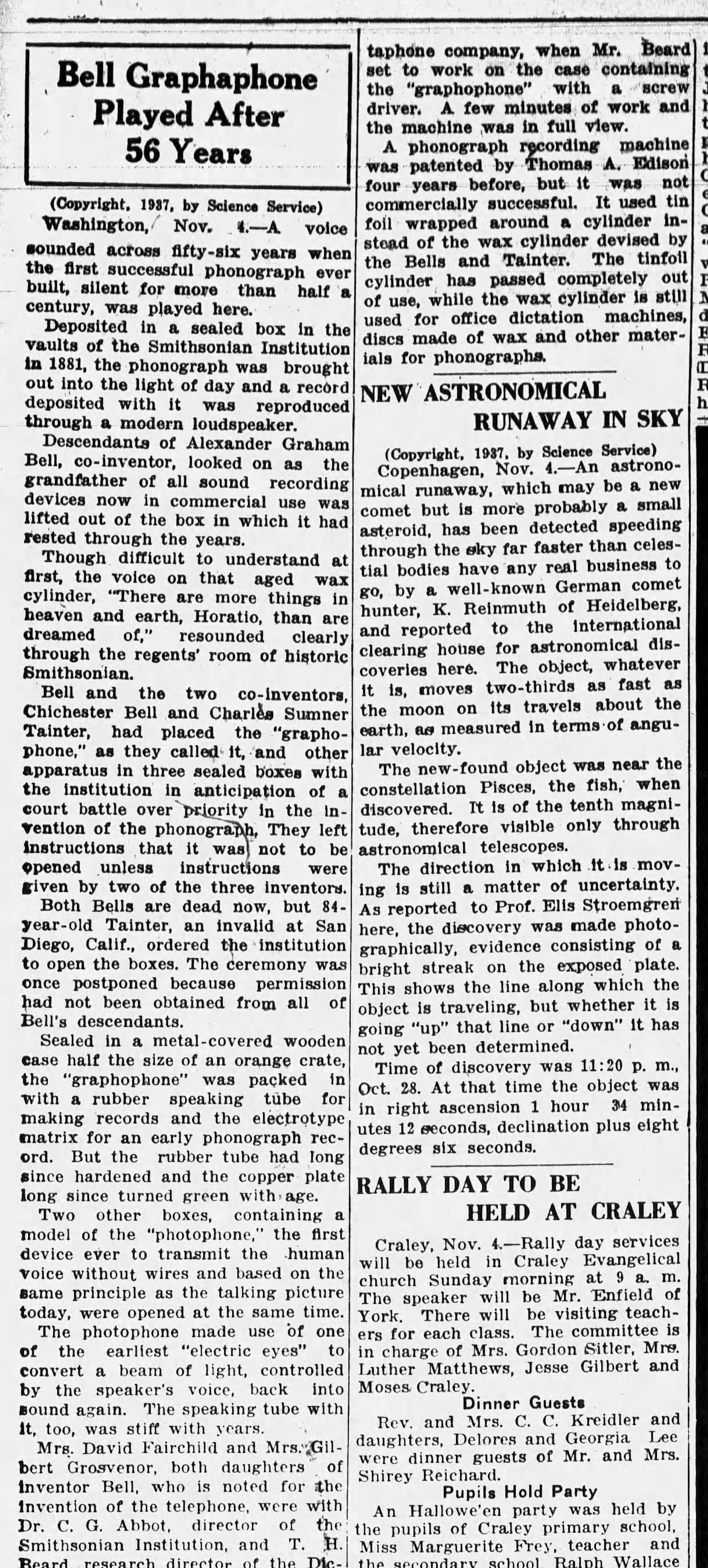 Early graphophone recordings played at the Smithsonian: November 4, 1937