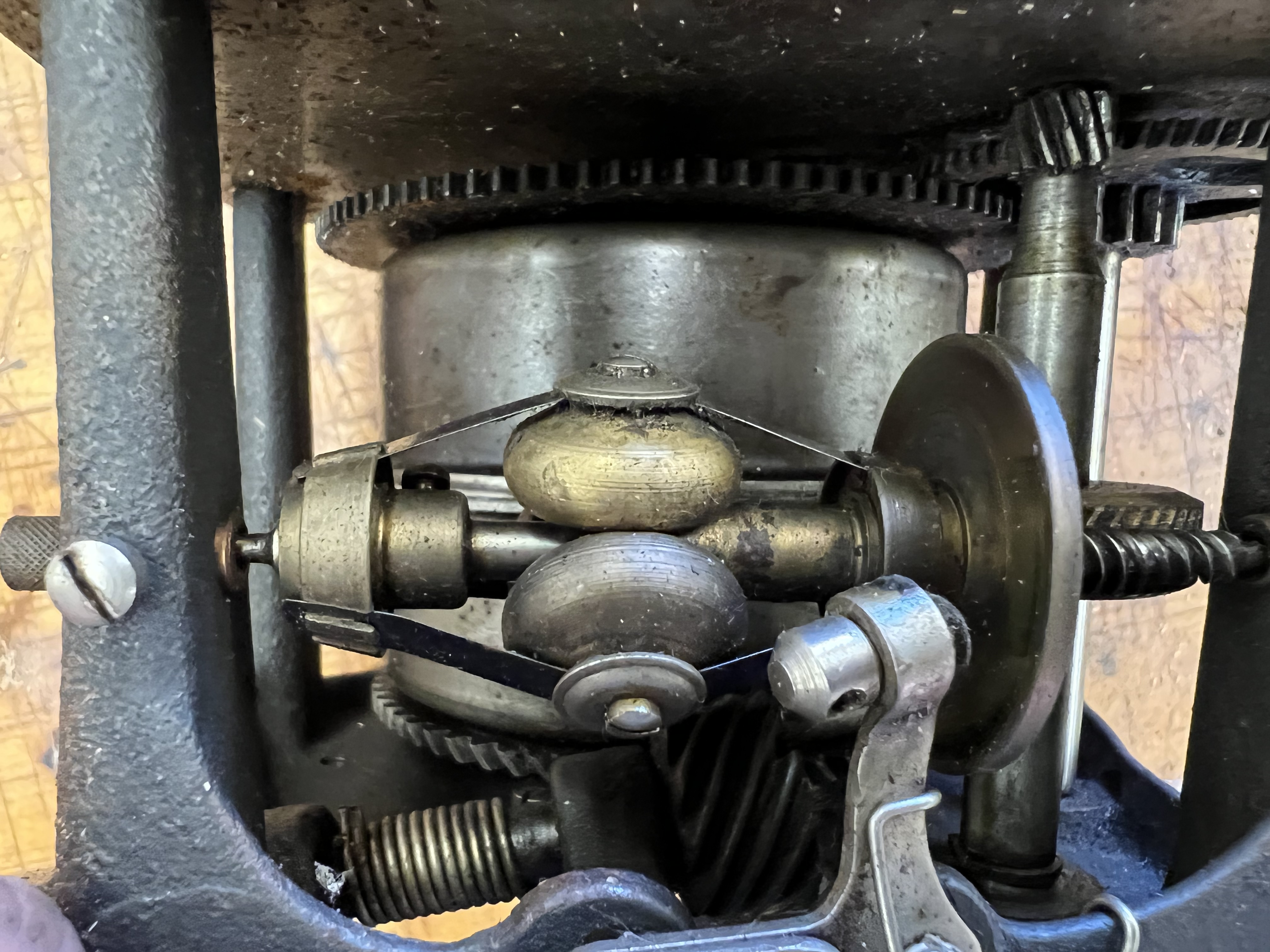 Also some slop in the pivots. Hopefully I don’t need to install new pivot bearings somehow. The gears have some wear, but not excessive, and the fibre gear looks to be in good shape, so maybe there is hope. It does spin when I give it a few turns on the winding shaft. The marking “75-A” is cast into the top plate. Has all the hallmarks of a garrard motor, including the interior mounted governor weights. Perhaps it will still run properly and quietly once cleaned and adjusted?