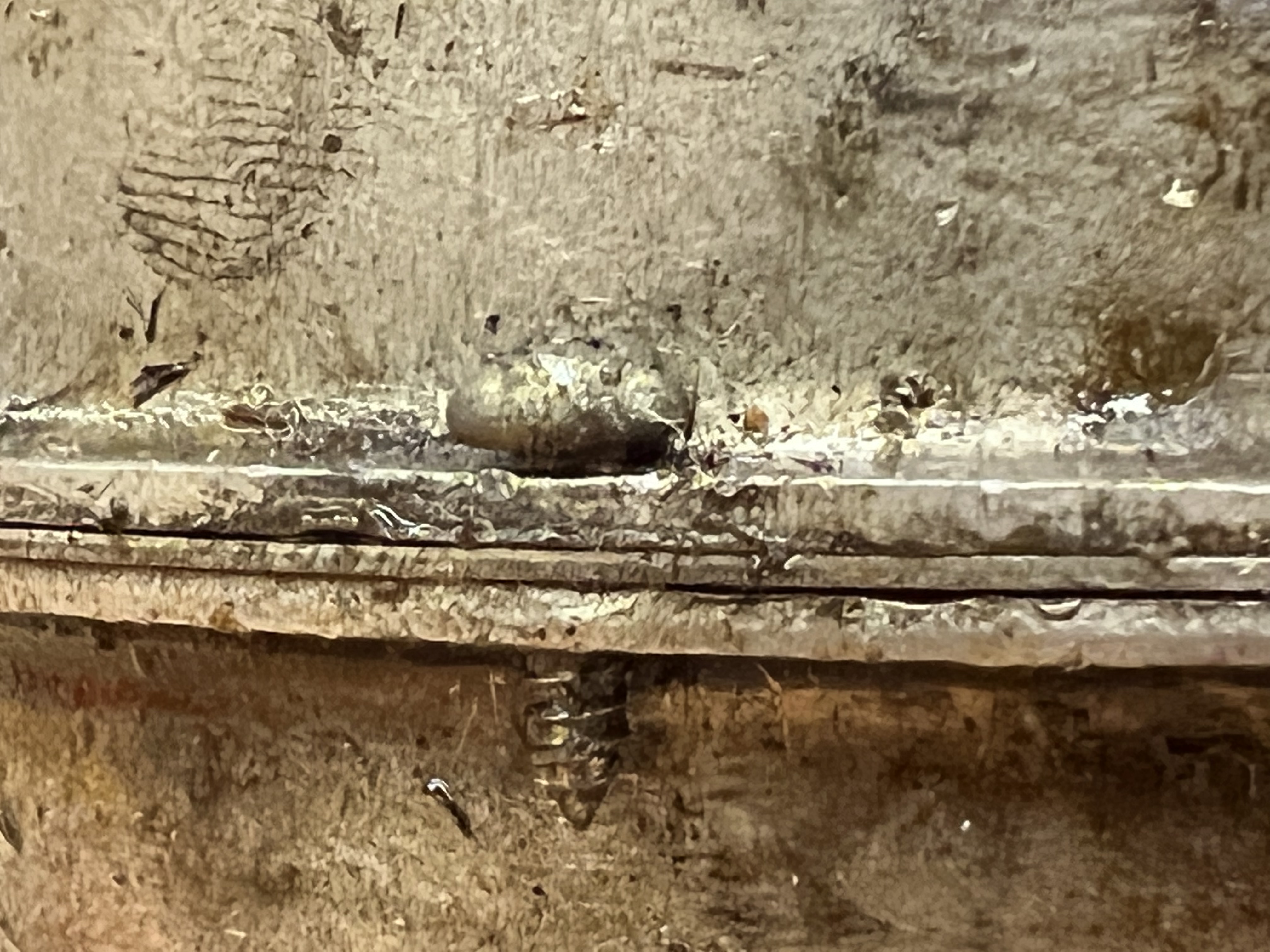 There’s a ton of damage to the case. None of it irreparable, but it will need re-covering or painting, or otherwise covered in some sort of thick veneer.