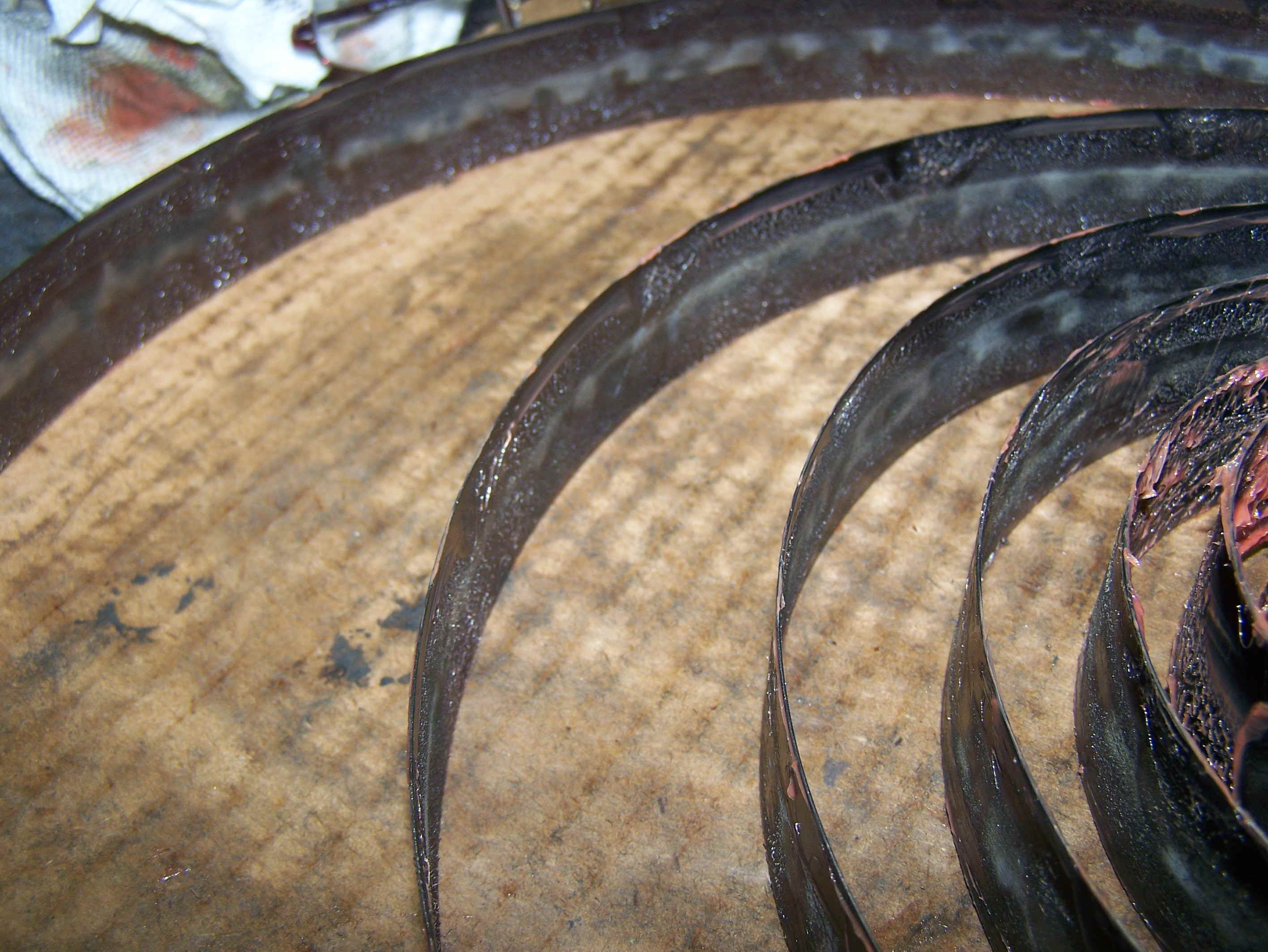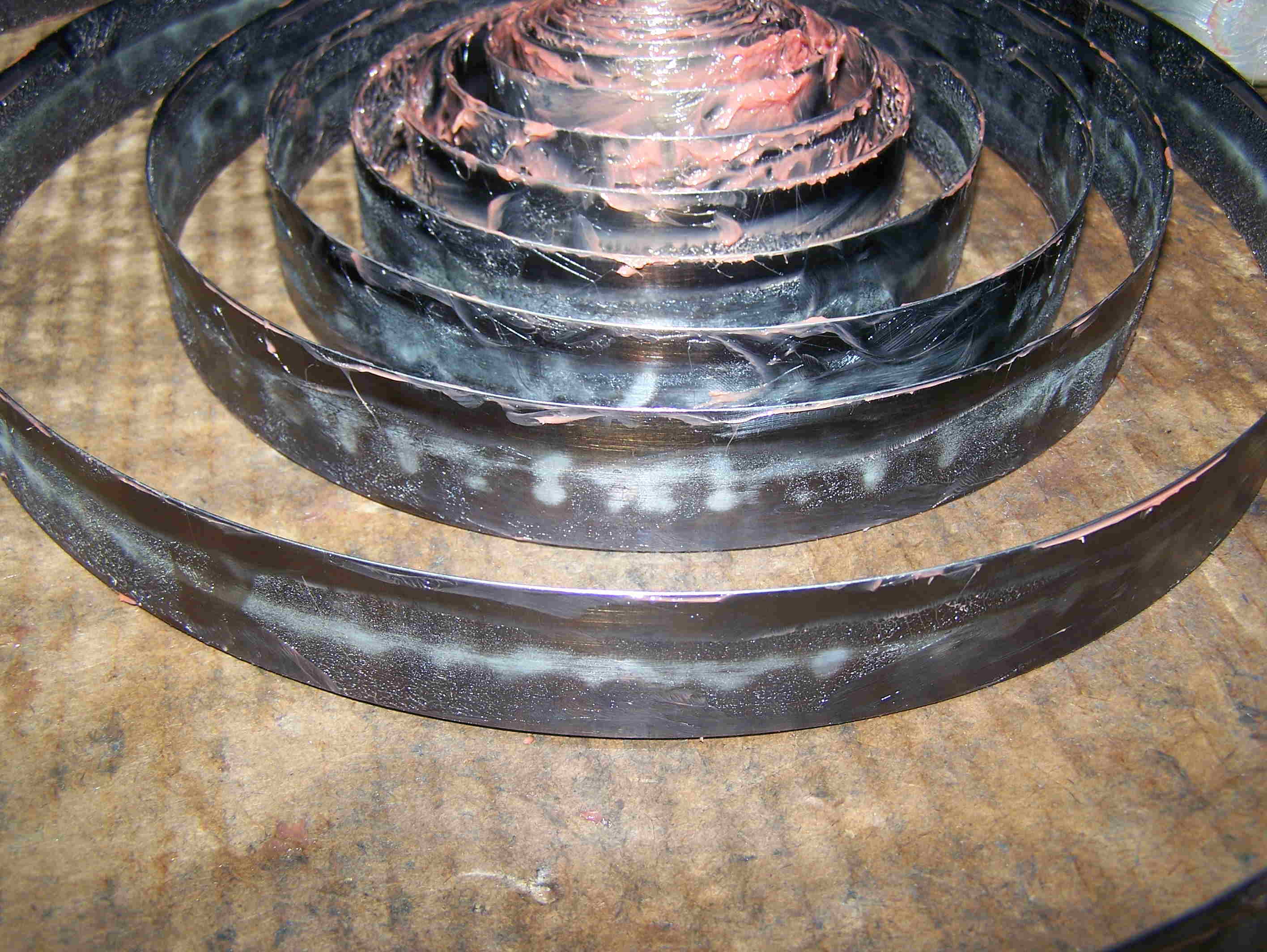 The photos show what grease is left on the spring after it was fully packed in the centre on a dry spring and barrel.