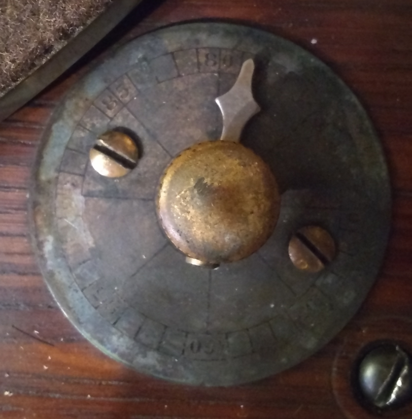( https://gramophonedoctor.ca/refurbish/aeolian-vocalion/ ). That one was labelled Scythe-Vocalian under the lid – my A-V possibly had a decal under the lid that may have been in the shape of the S-V decal – it is hard to tell – in certain light conditions, there might be some ghosting of a decal or maybe not. Scythe was an Ontario manufacturing company that may have assembled A-V machines. However, I have since seen very similar, if not identical models, on various auction sites in the US and the UK. So my A-V model is not unique to Canada.