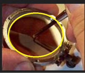 2. Position the diaphragm on top of the gasket and apply a coat of silicone caulk to the edge of the diaphragm, as crudely shown by the yellow circle here: