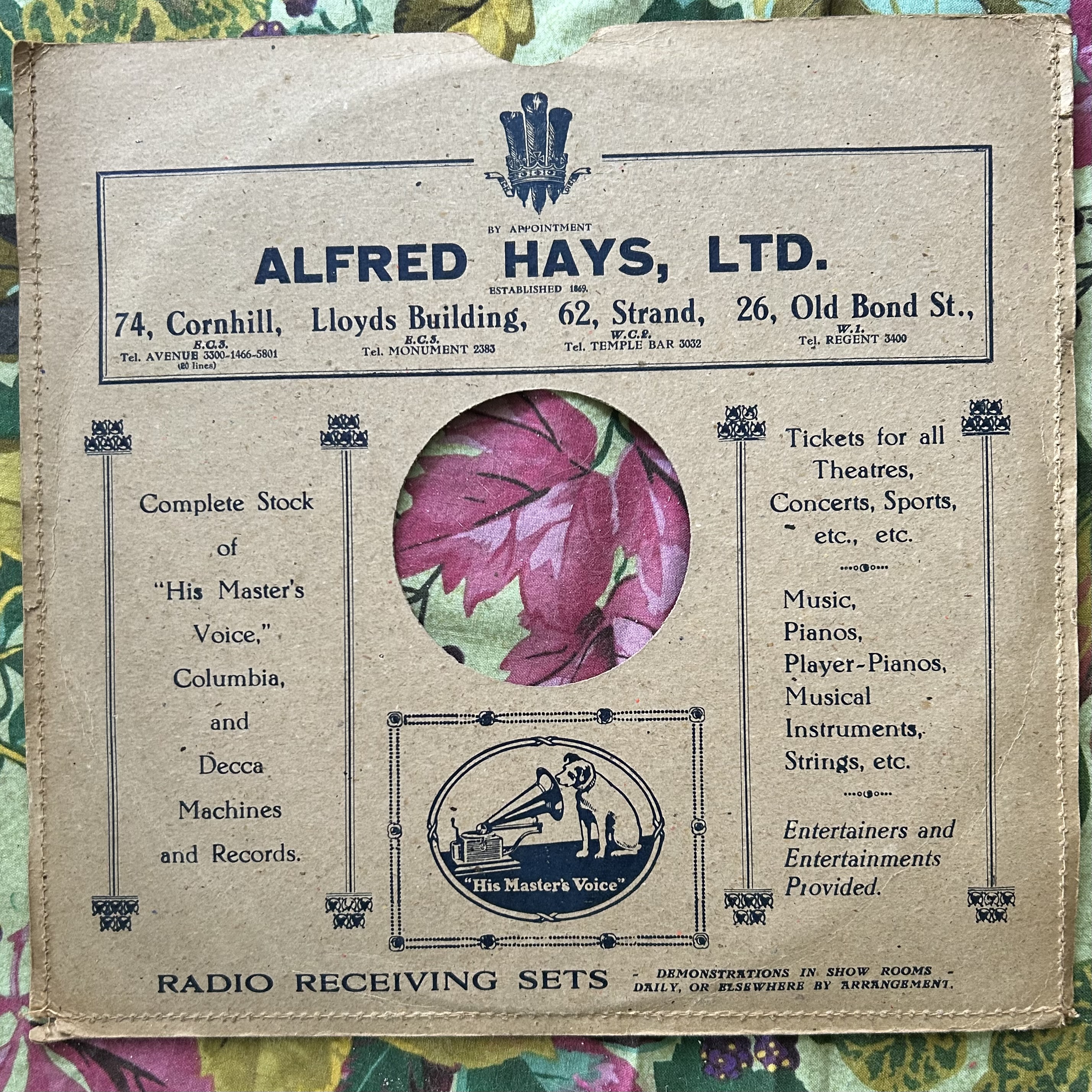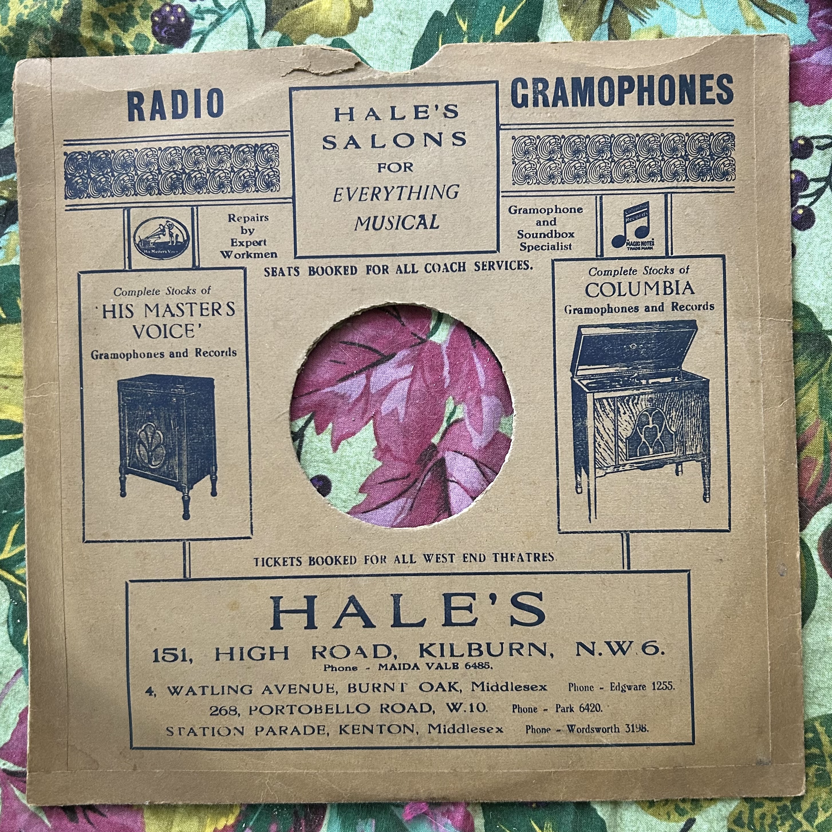 Hale’s lists more shops on this cover and the machines pictured are newer, electric machines, I think, while this Alfred Hays Ltd. cover does not mention Parlophone or Brunswick, though they appear on the previous one and the Prince of Wales crest differs slightly.