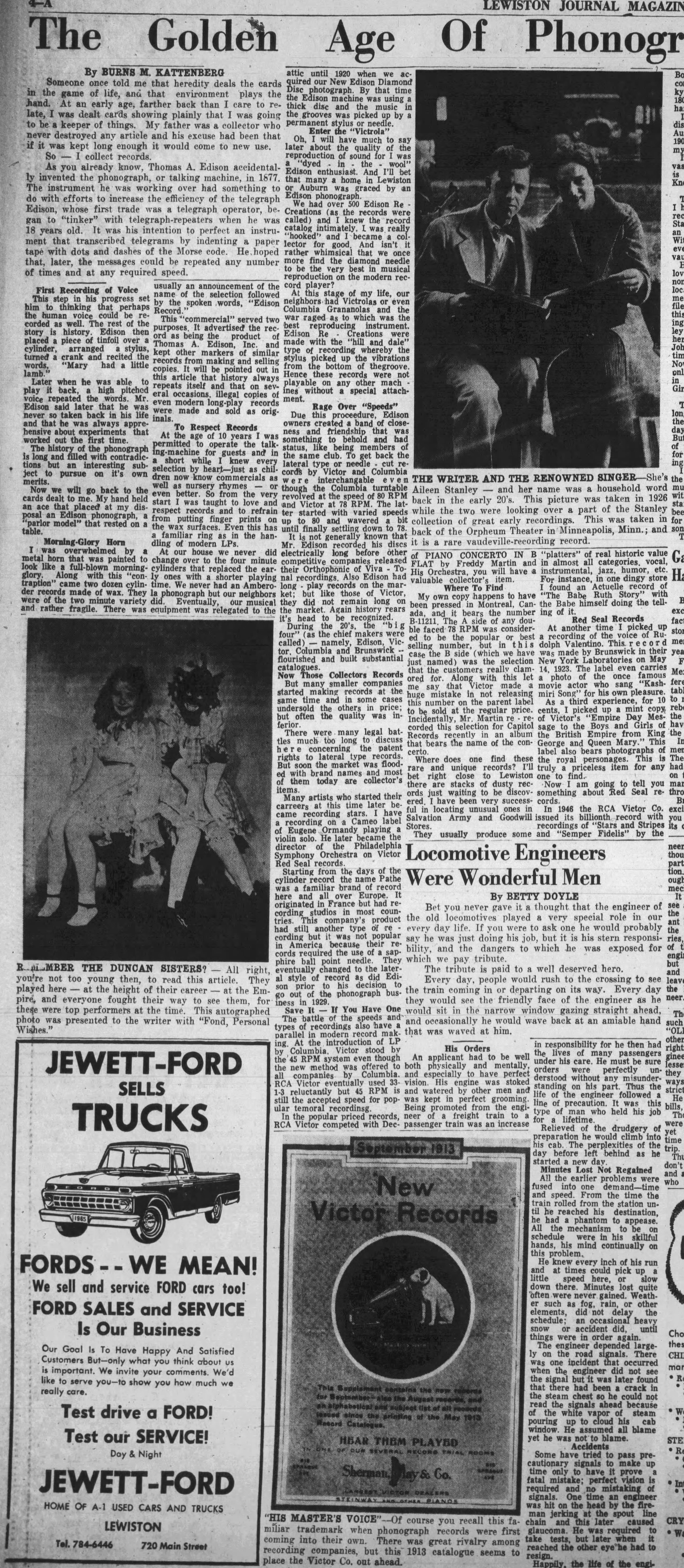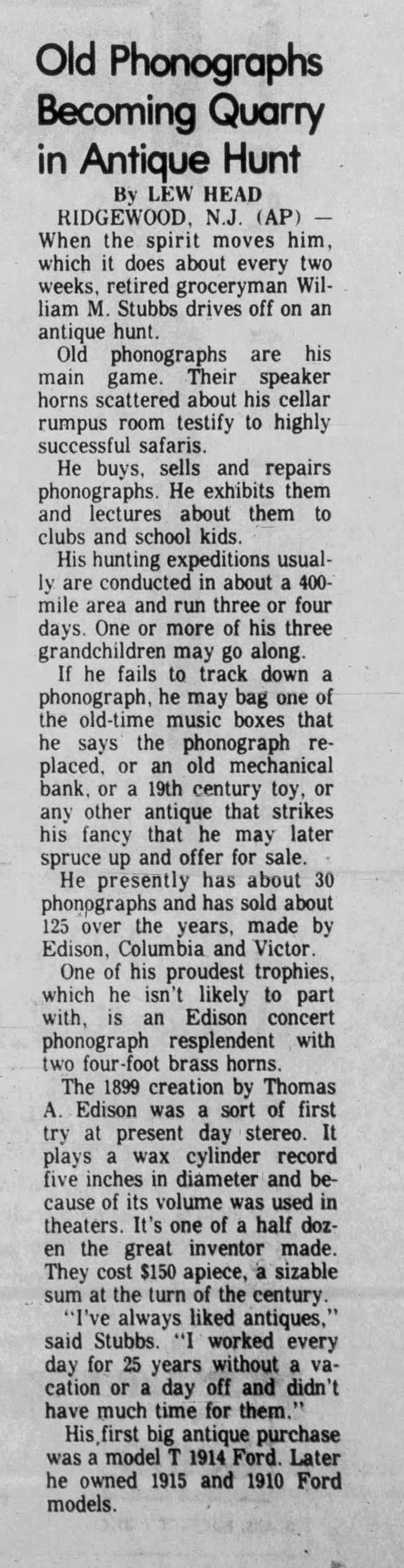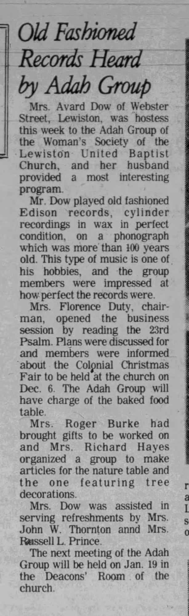 November 19, 1975 article of a women’s club listening to some cylinders.