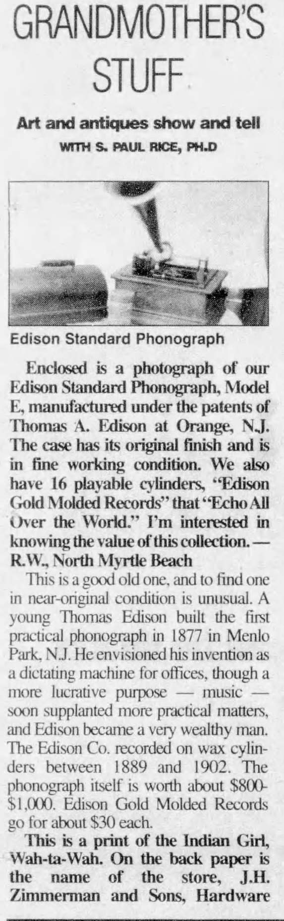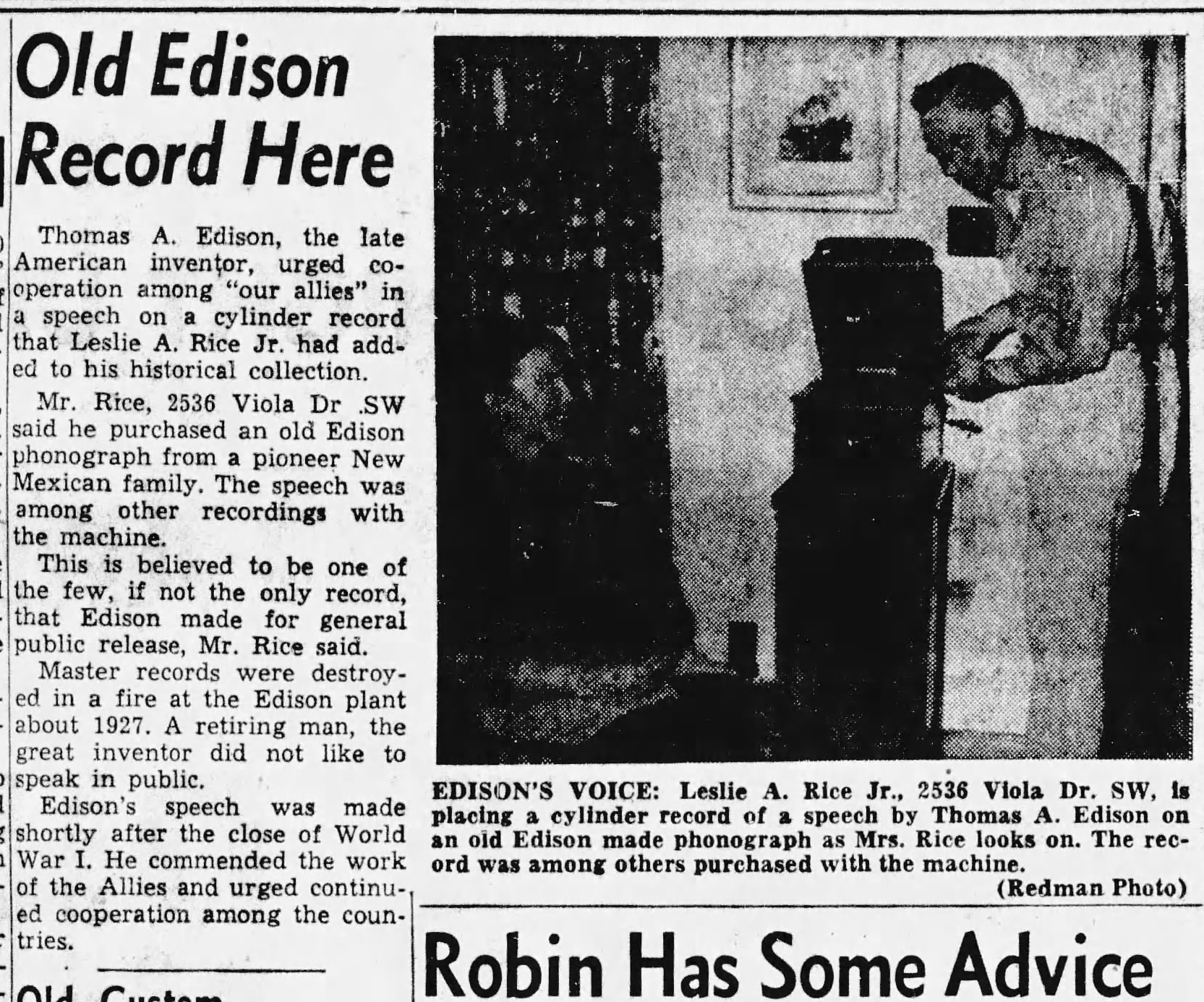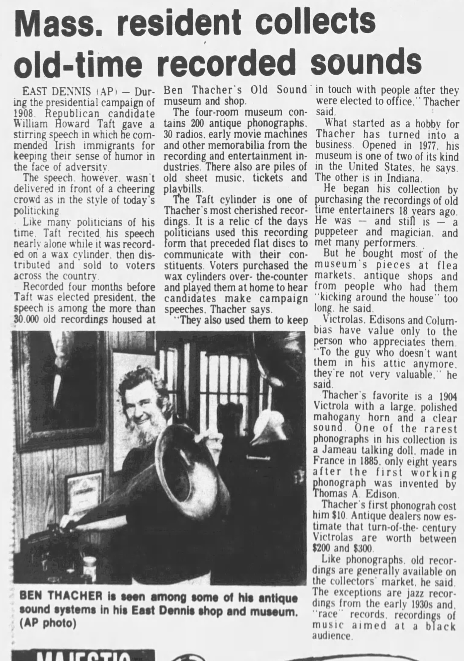 November 19, 1975 article of a women’s club listening to some cylinders.