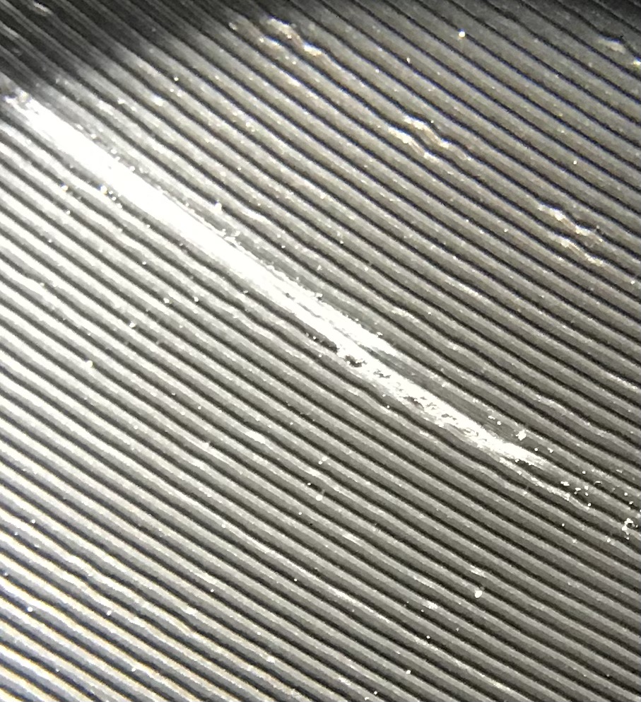 I just bought an "Excellent" record from this guy on eBay and there is a gouge... like someone dropped a tonearm and the needle disturbed two grooves, leaving an audible distortion, split second, I admit, at two revolutions. He claimed he played the record and heard nothing and suggested that records suffer a little "greying" or wear with time. Greying on an EX record? Does the image below look like "greying" to you?