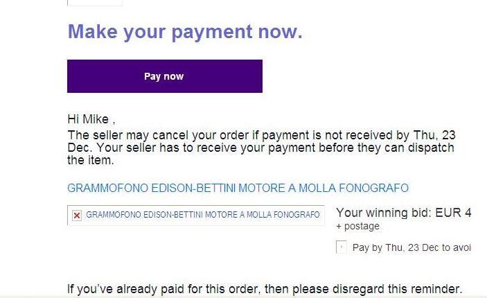 Ebay chasing payment