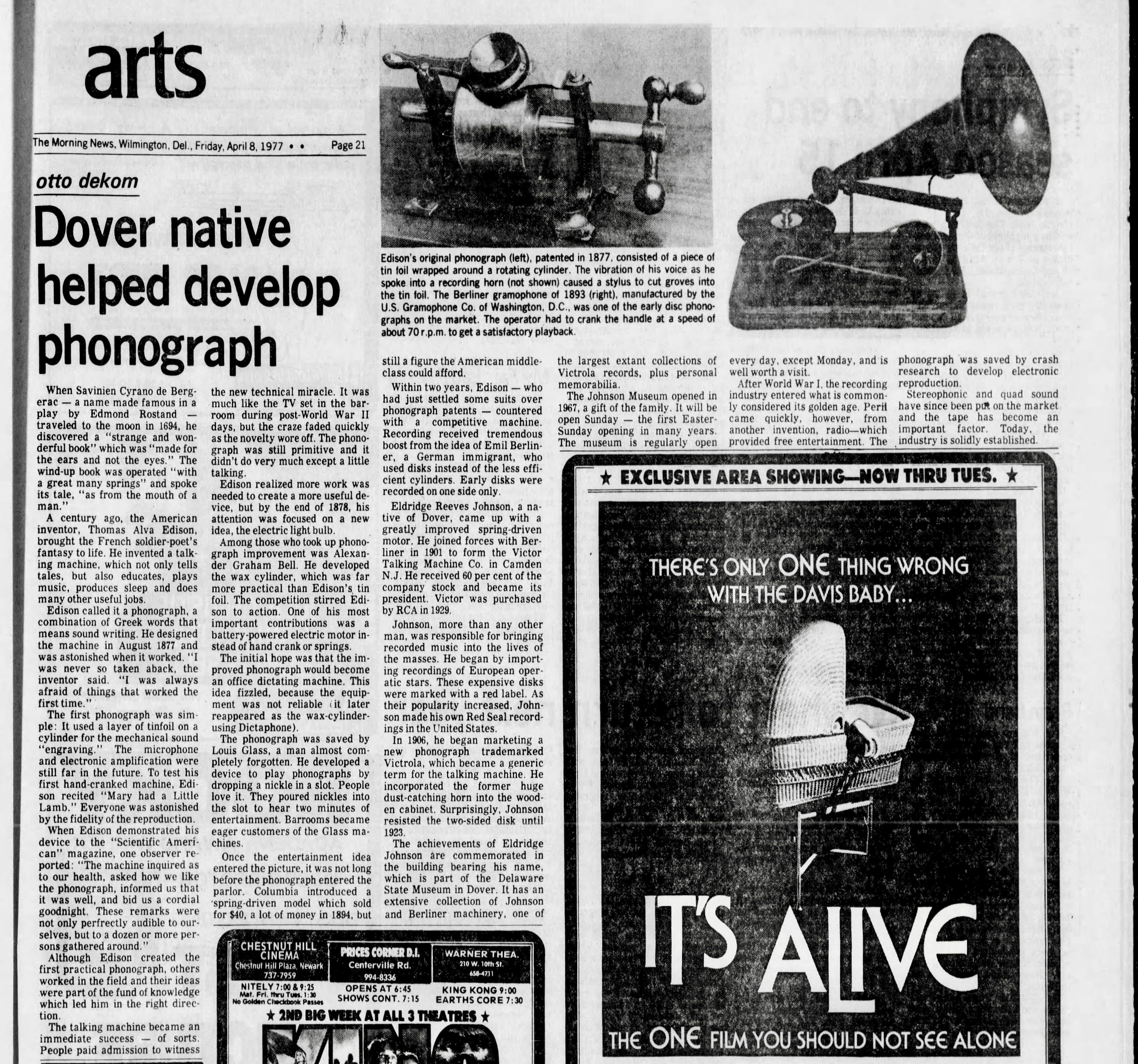 Story about E.R. Johnson : April 8, 1977 (BTW the Larry Cohen film next to the article was a DOOZY of a movie)