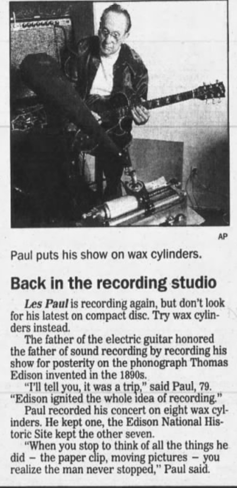 So In 1994 guitar legend Les Paul recorded some cylinders…has anyone here ever heard these cylinders or did they get locked up for the past 28 years? And what happened to Mr Paul’s cylinder after he passed away?
