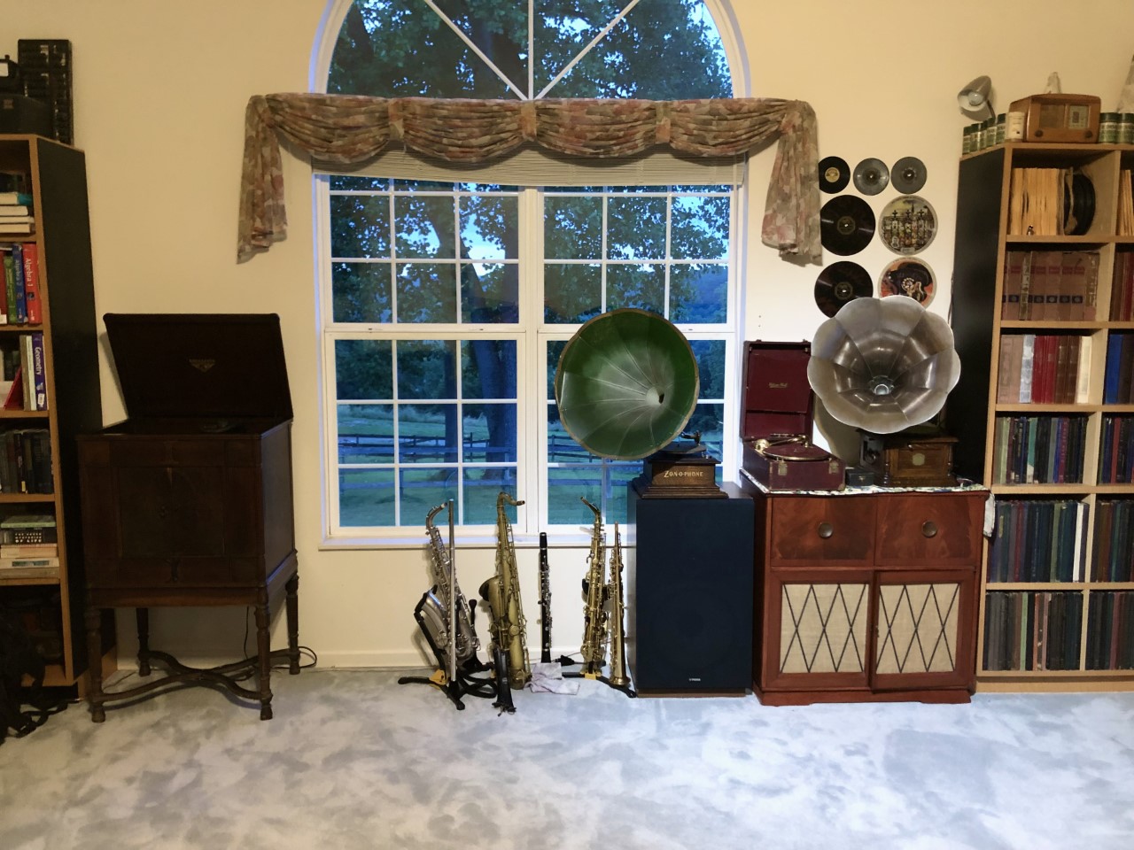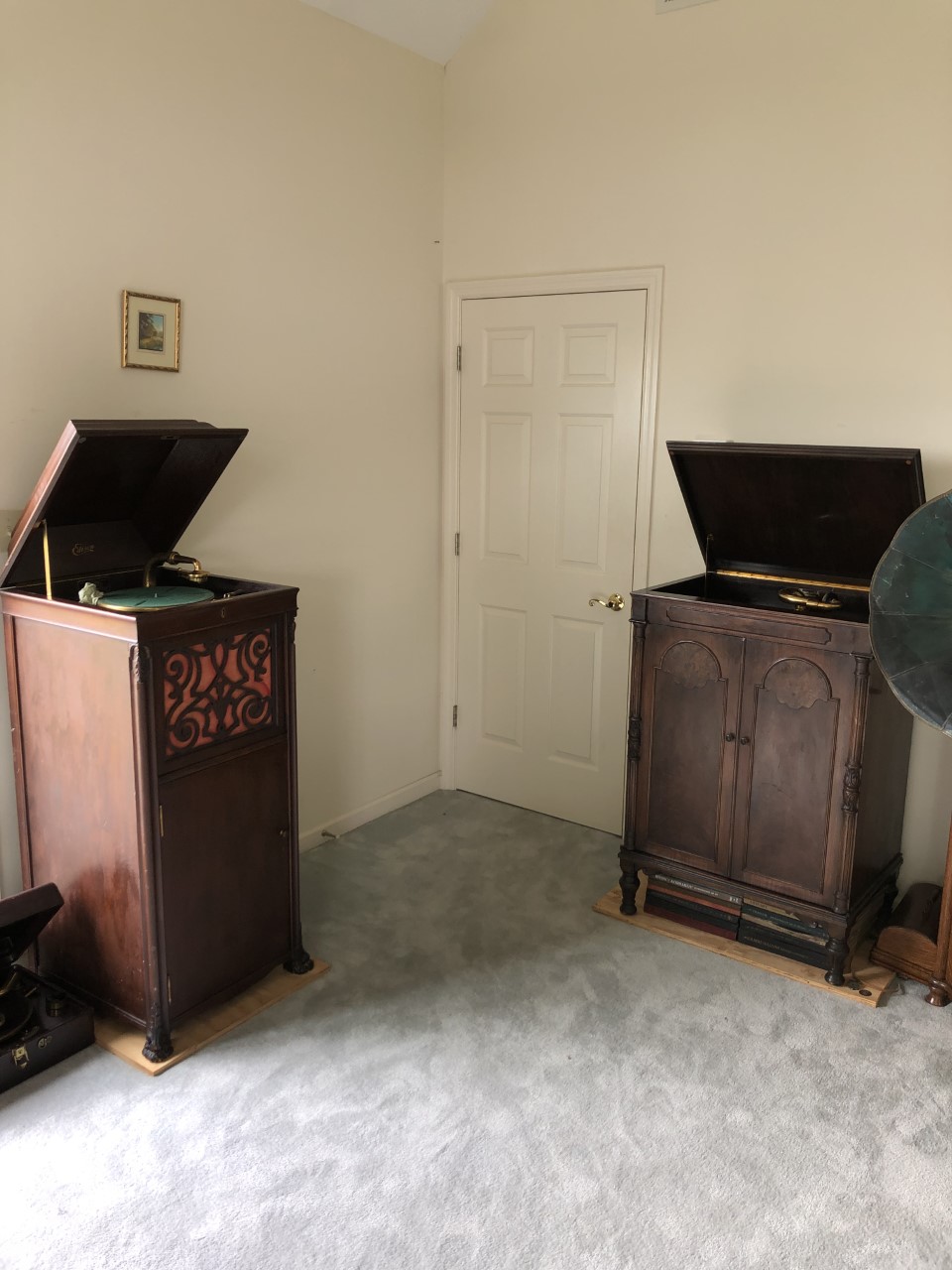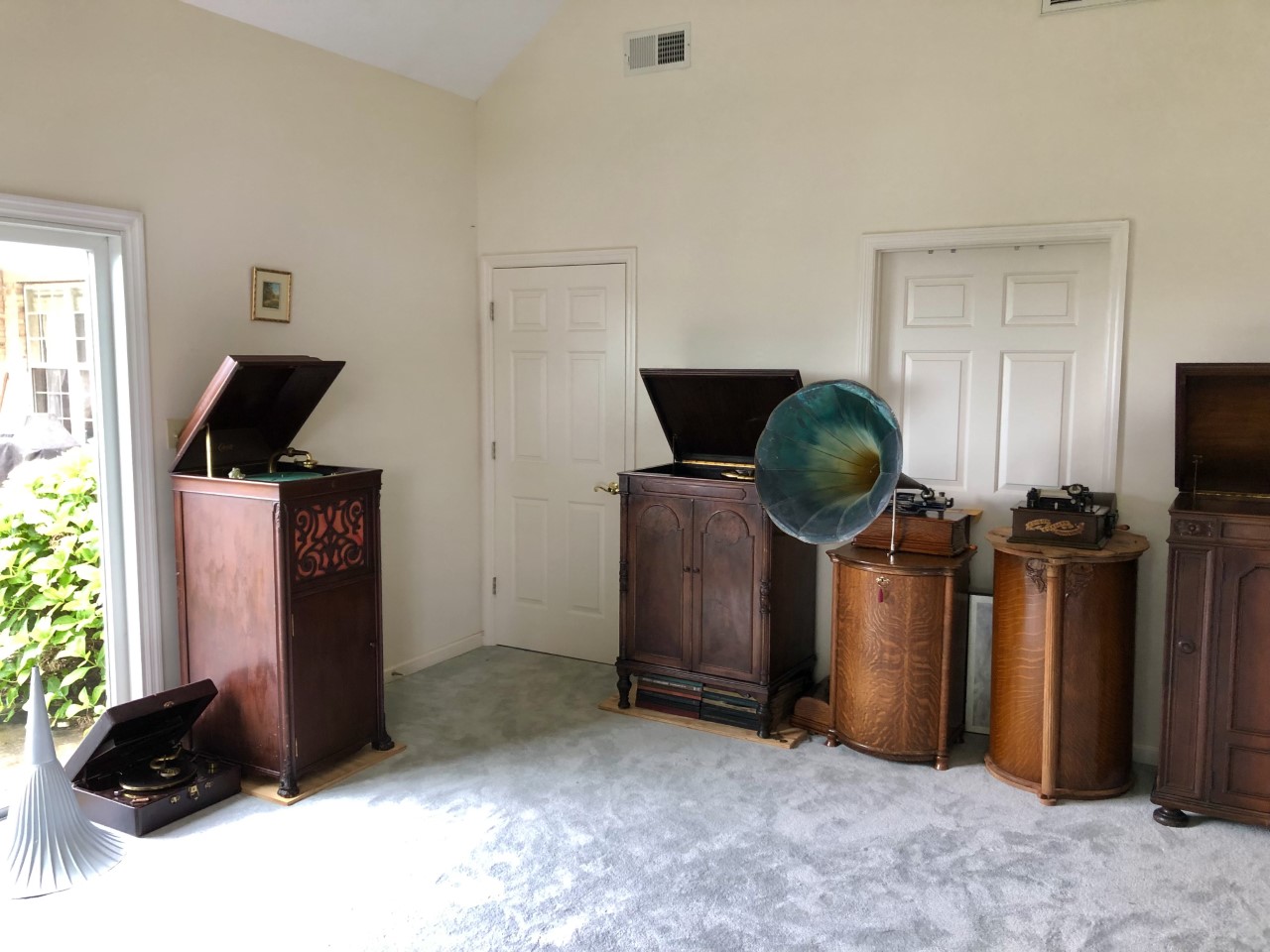 You have a nice phonograph room, and quite big! You've been bit by the phonobug, and you'll never stop! Yet you have plenty of room yet to fill in! Nevertheless, as you discover new and better machines, it may well be that some of the ones you have will loose interest for you, so you may consider swapping machines when you acquire a new one, or selling one of them. For me, the trick would have been that, but I only swapped once, and I still regret it, and miss that machine!