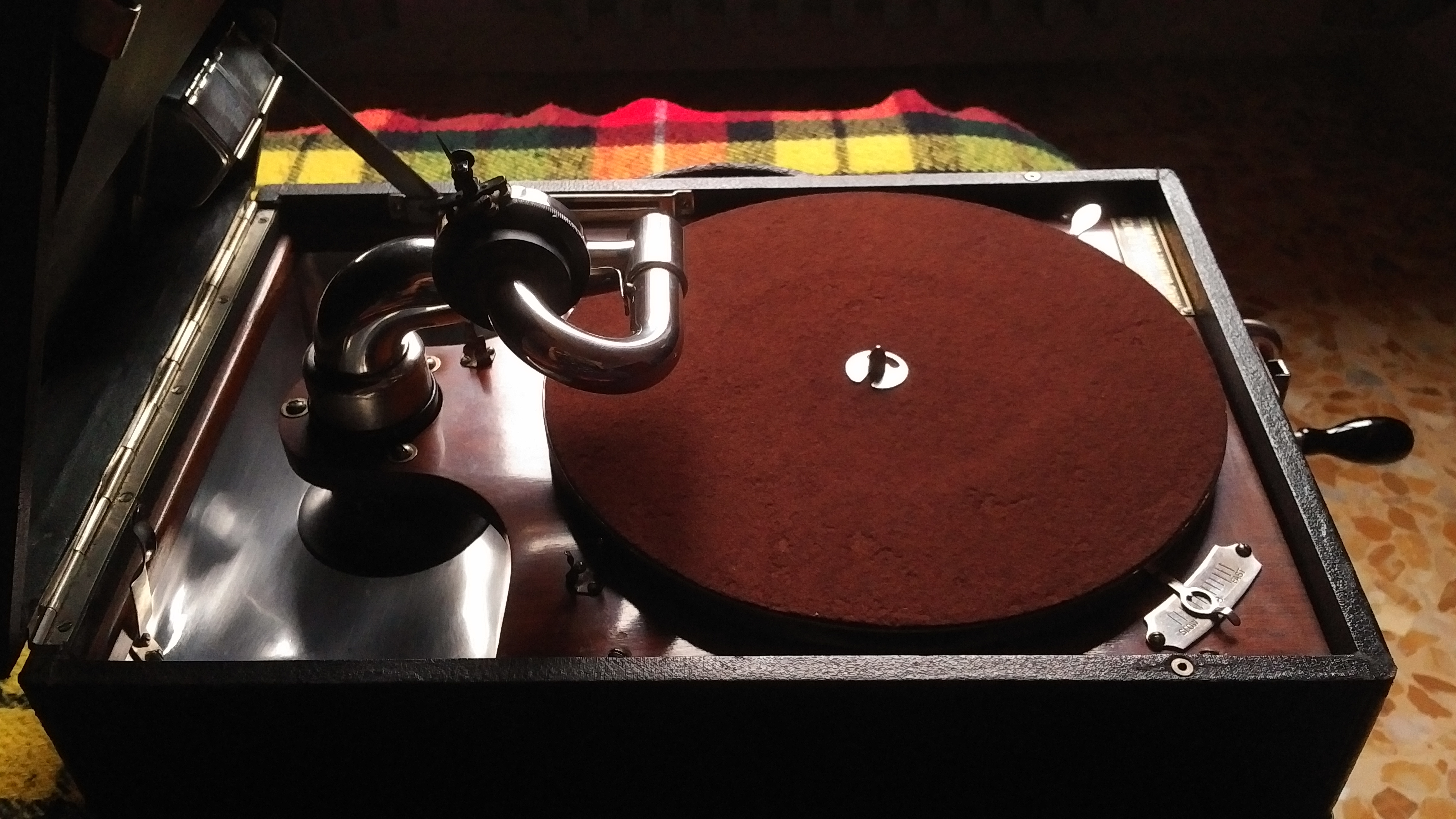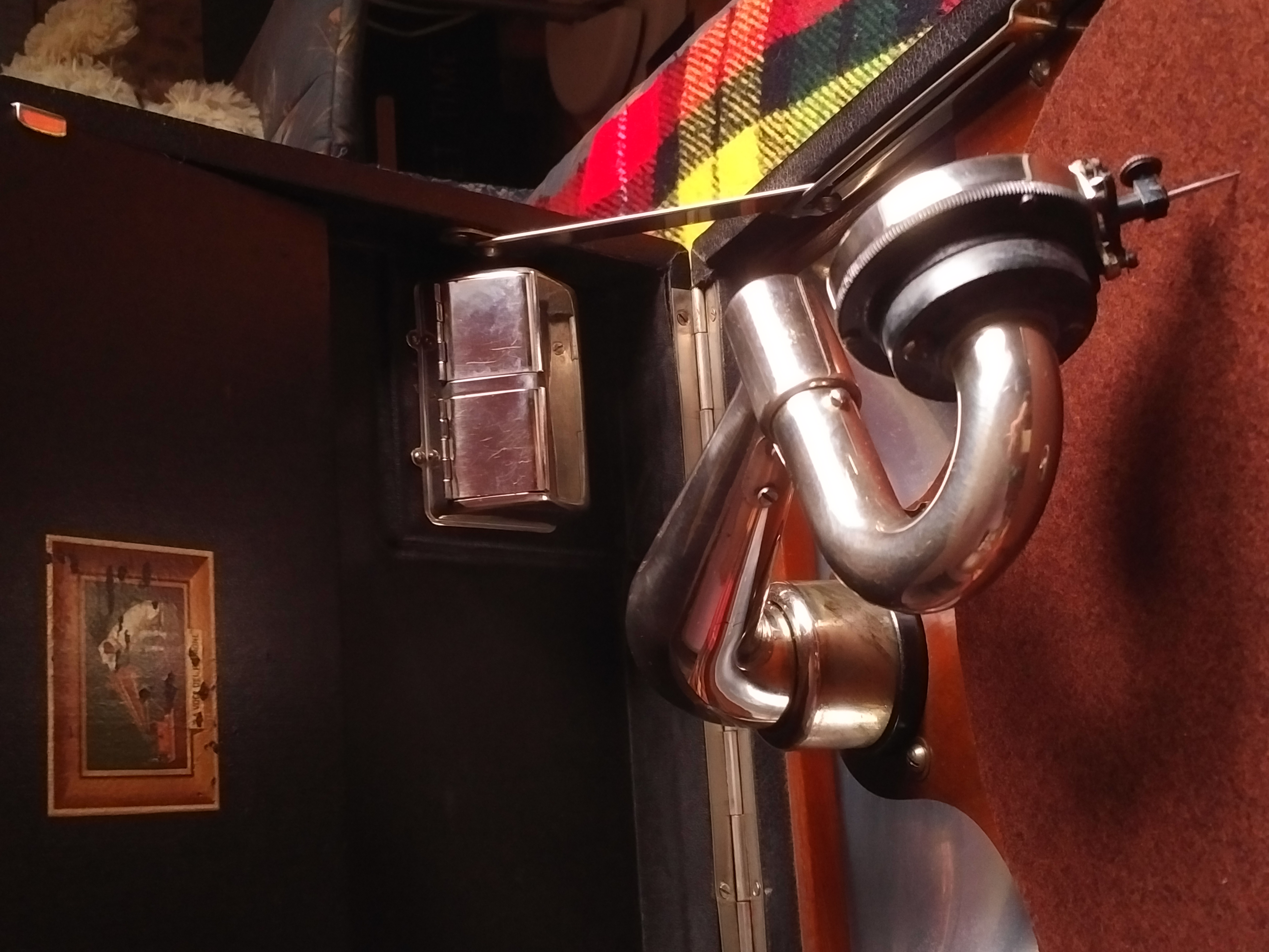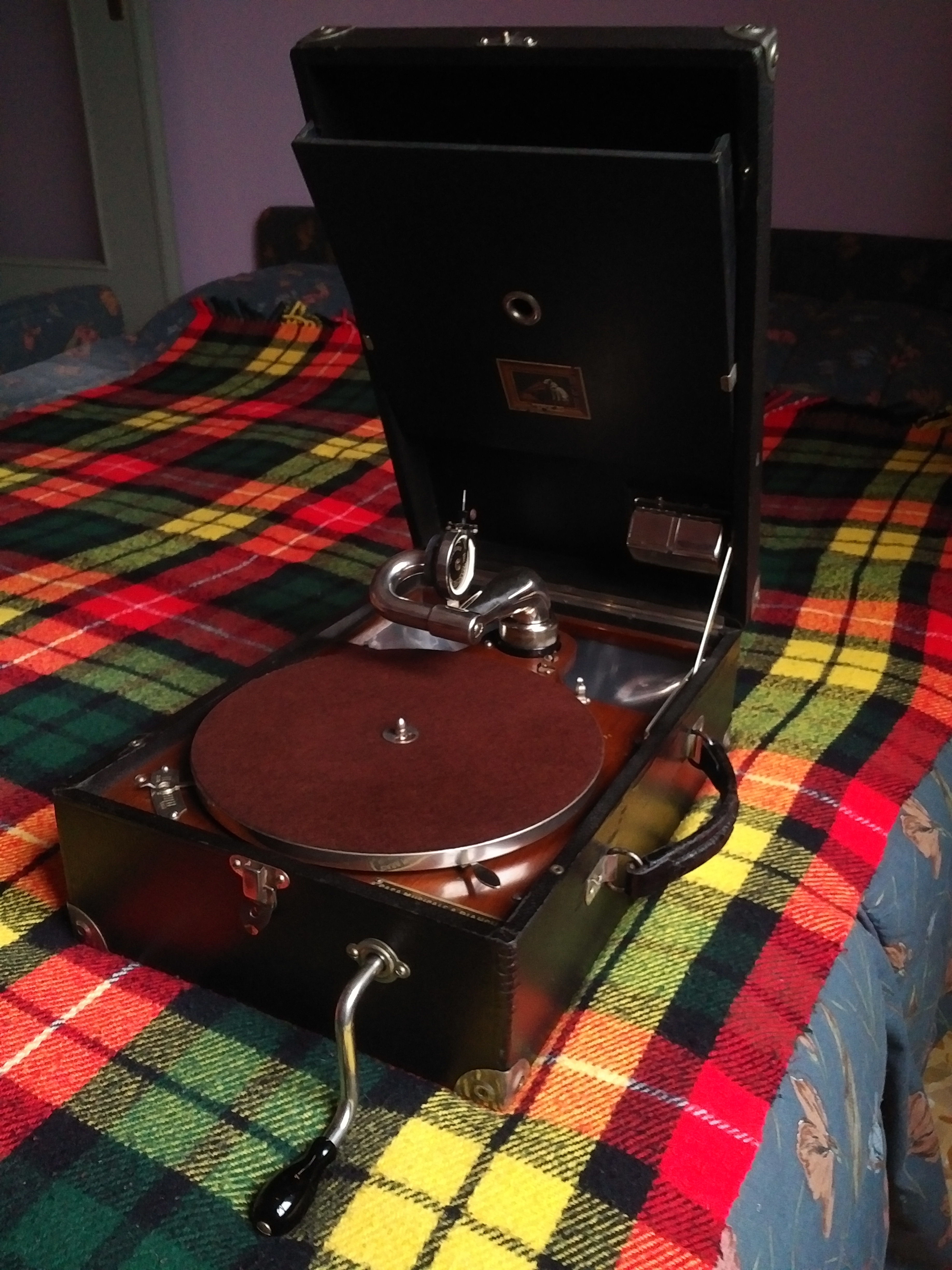 The style and configuration of the carrying handle is 100% spot on BUT I don't think the main stitched leather strip is original. It appears to have a different age, colour and condition to the two "fish-eye" end loops, which ironically are original to the machine. I wonder if the original strip broke in two and someone found a like for like replacement but re-used the two ends for authenticity.Inigo wrote: Thu Sep 07, 2023 1:44 am I've seen this kind of leather strip handle and supports to the case on early HMV 101s of the side-crank type, so it must have been in use for a certain period, it seems authentic.