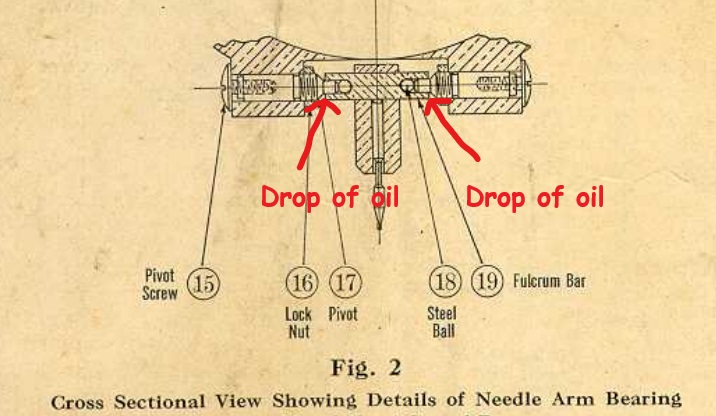 Although after seeing your video I want to ask... Has the soundbox suffered any hard kick out something? A kick could have impacted the pivots and this the needlebar oscillation is frozen. If this was the case anyway you may notice a much poorer sound.