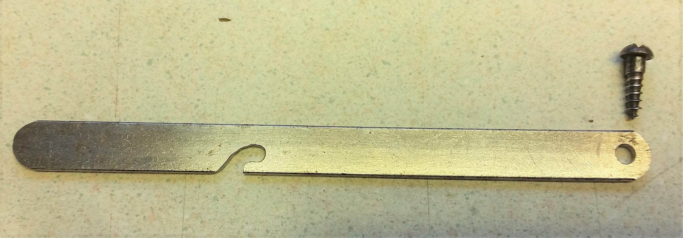 Next the machine was missing the lid prop lever. I have a nickel plated rod from a Saal motor that controlled the governor that I thought would work.