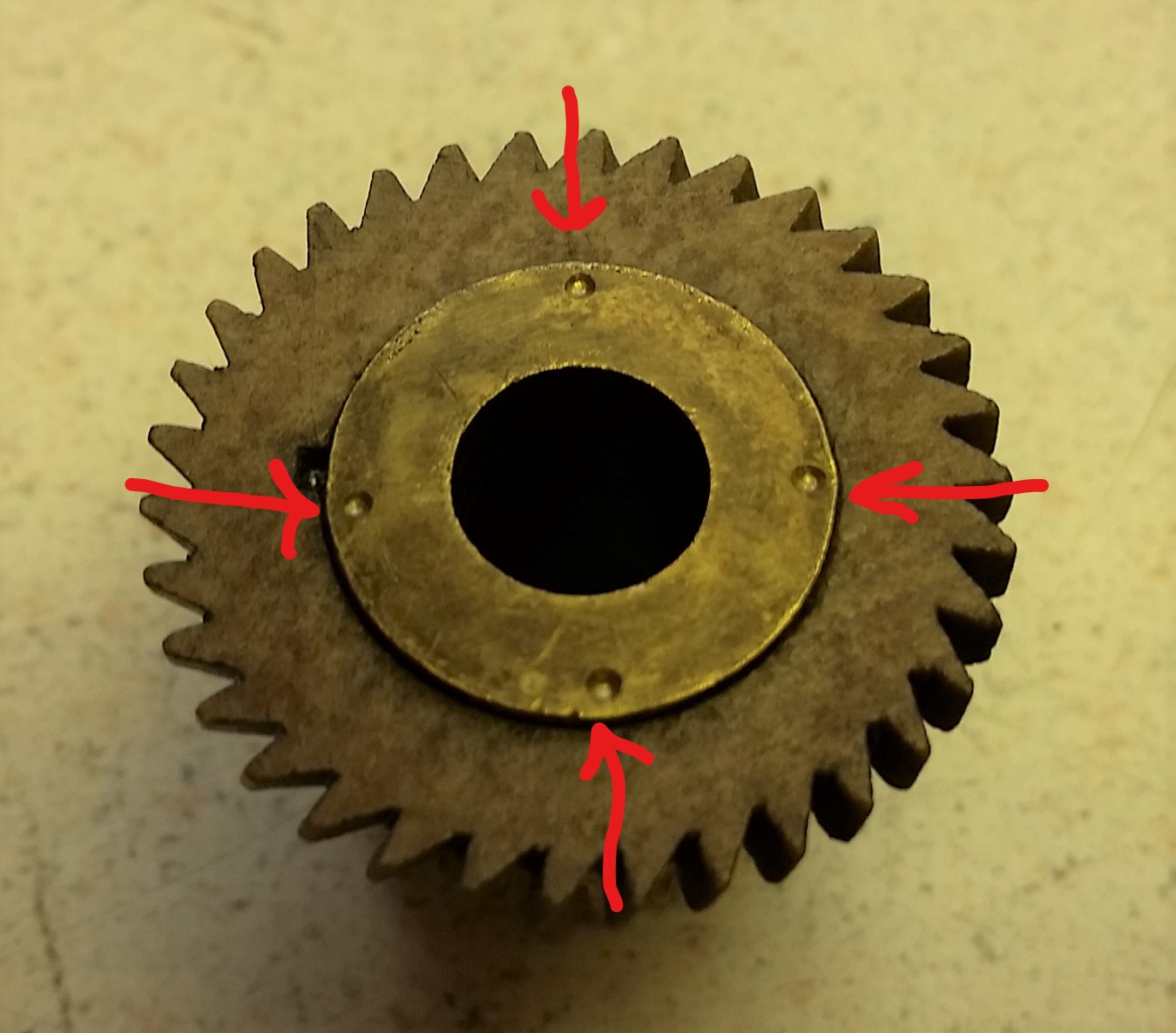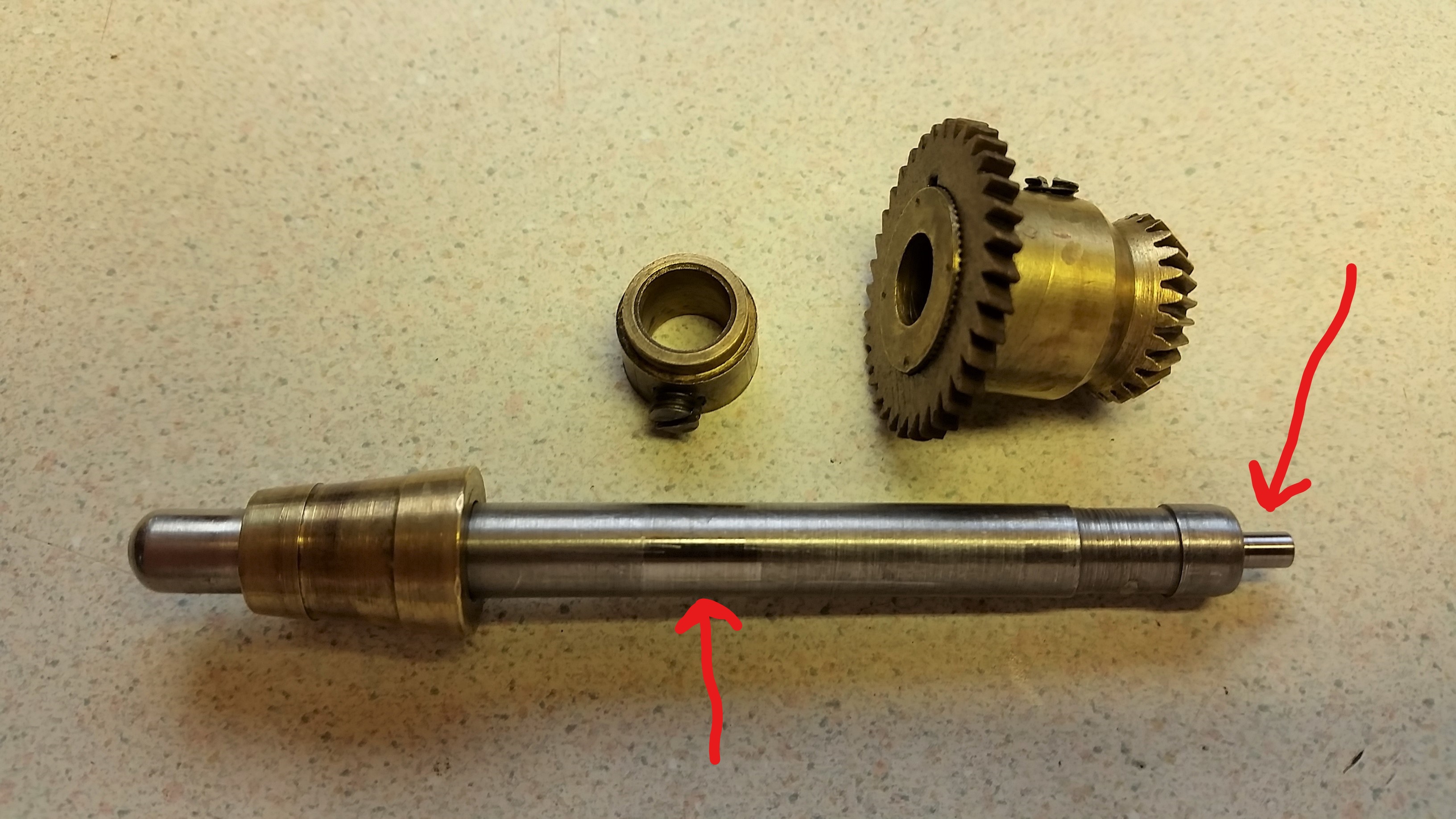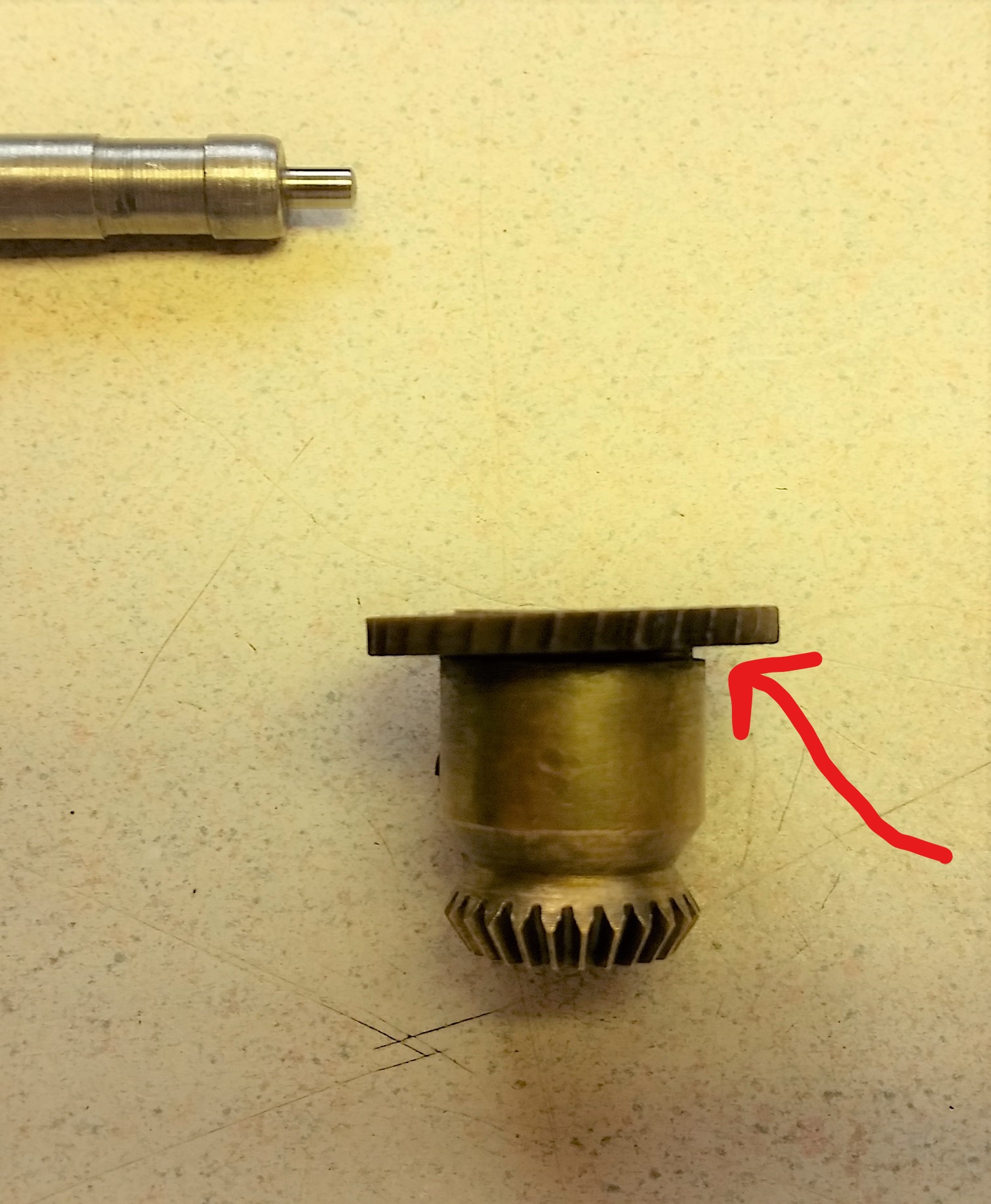 Inspection of the drive gear and the governor gear I found that the governor gear that is pressed on the hub with knurls has worked loose. You can see how the gear can cock under a load.