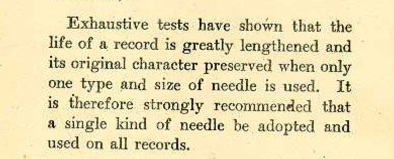 The was recommendation is based upon "exhaustive tests." What the "exhaustive tests" were is not related. The manual as a whole (and the 1914/15 Aeolian-Vocalian catalogue) is given to greatly hyperbolic prose, and as such, its use of the adjective "exhaustive" might be somewhat suspect.