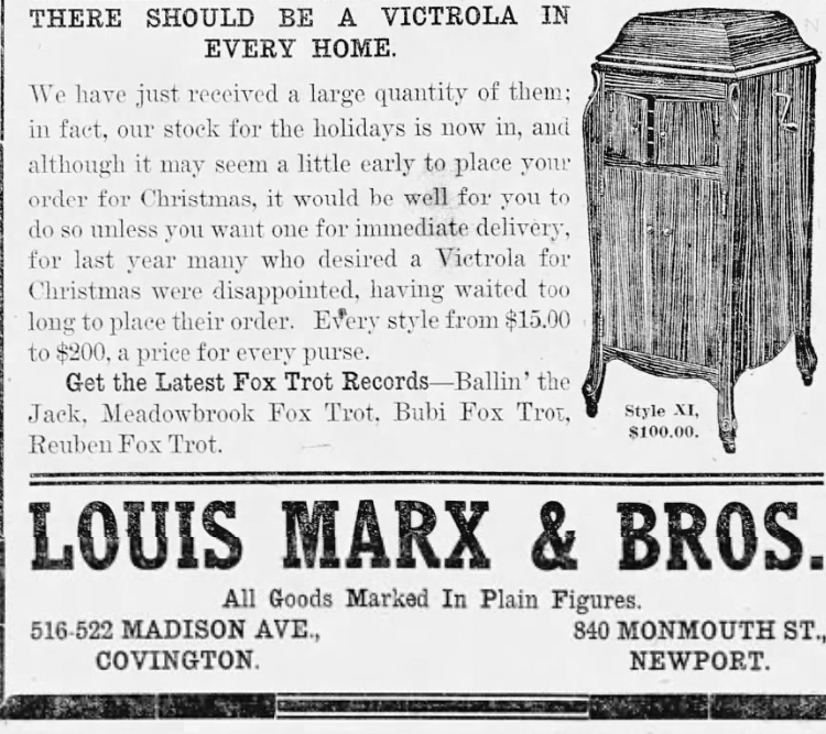 November 6, 1914: pre-order your Christmas Victrola from the Marx Bros. OR BE DISAPPOINTED LIKE LAST YEAR!