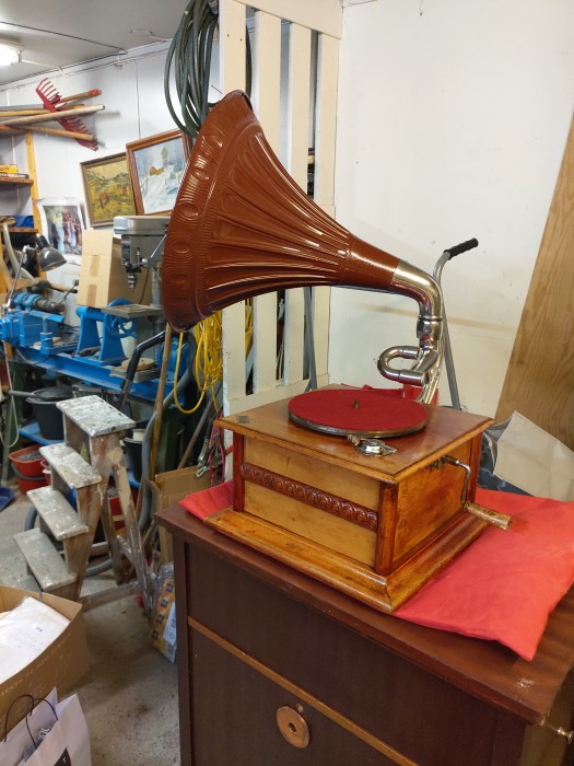 I prefer this as it is. A really great looking gramophone.nostalgia wrote: Sat Jun 05, 2021 6:30 am What do you think about this Pathéphone. Is it all genuine, apart from the Peter Pan soundbox?