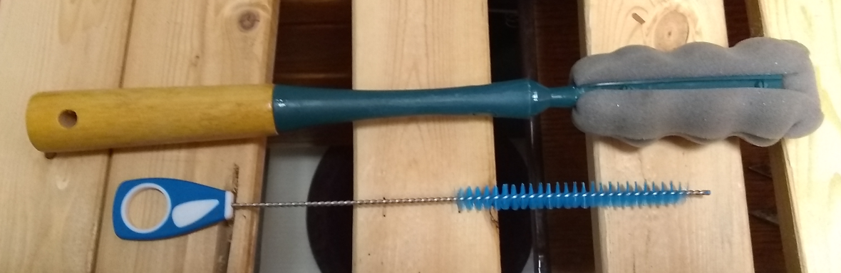 The sponge brush was particularly useful, at first for washing and rinsing and secondly for polishing. It was possible to wrap a microfibre cloth around and then secure it with small narrow zap straps. The (drink) straw cleaning brush was useful for loosening debris, cleaning the open areas of the name plate, and then for a bit of polishing as a bit of rag could be secured around it, too.