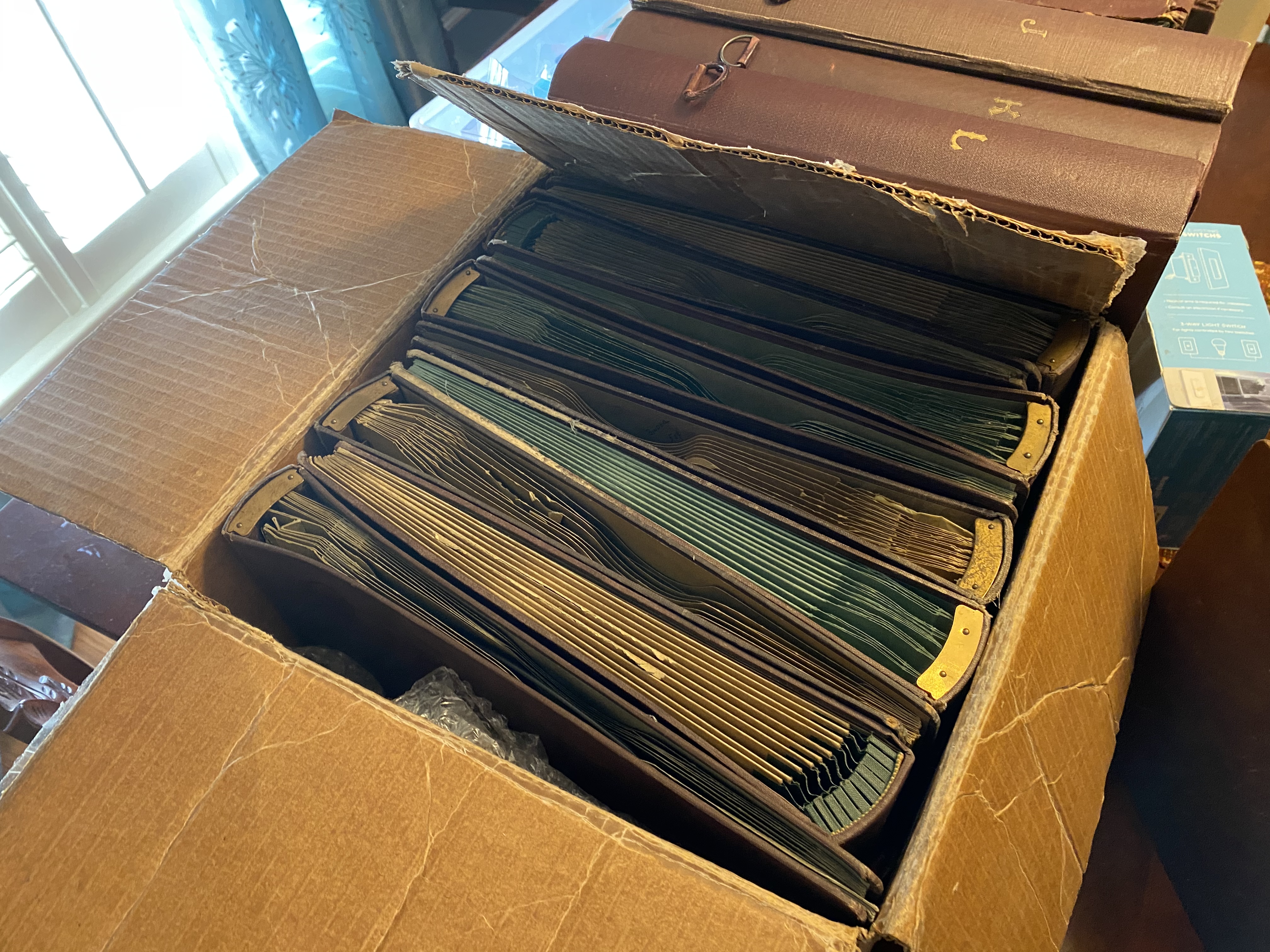 That's a nice looking machine. Those look very much like record boxes in yours, but I can't be 100% sure from the angle of the photo. What I am looking for is the record albums, like books with about 16-17 pages each. They have the same brass pull rings, but a more bowed front/spine and no wood at all.