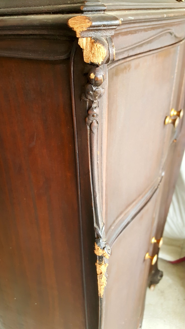 This is an early 1917 model VV-XVII, as indicated by the serial # and Exhibition Reproducer (which changed to #2 reproducer later in 1917). The 4-spring motor has been cleaned and lubed; plays well. The gold Exhibition reproducer has been rebuilt with new gaskets and sounds great. The mahogany cabinet has age-appropriate alligatoring, which can be cleaned to return it to its original finish. There is some damage to the corner carvings, as seen in the pics. If you're looking for a project with a good prospect of making a beautiful Bombay cabinet, this is it. All the gold-plated hardware is there (missing 1 lower escutcheon). Can arrange delivery within 100 miles of Norman, Oklahoma. Thanks, Roy