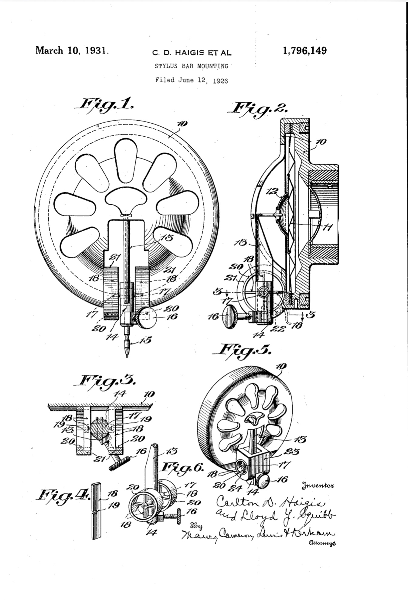 As suspected, the domed insert is intended to be installed with the convex side facing out. Here is a patent drawing by Victor’s chief physicist, Dr Haigis, picturing the insert. Notice the alternate needle bar mounting using flexible members in place of the ball bearings. As far as anyone knows this design and other needle bar mountings that were also patented were never implemented in production.