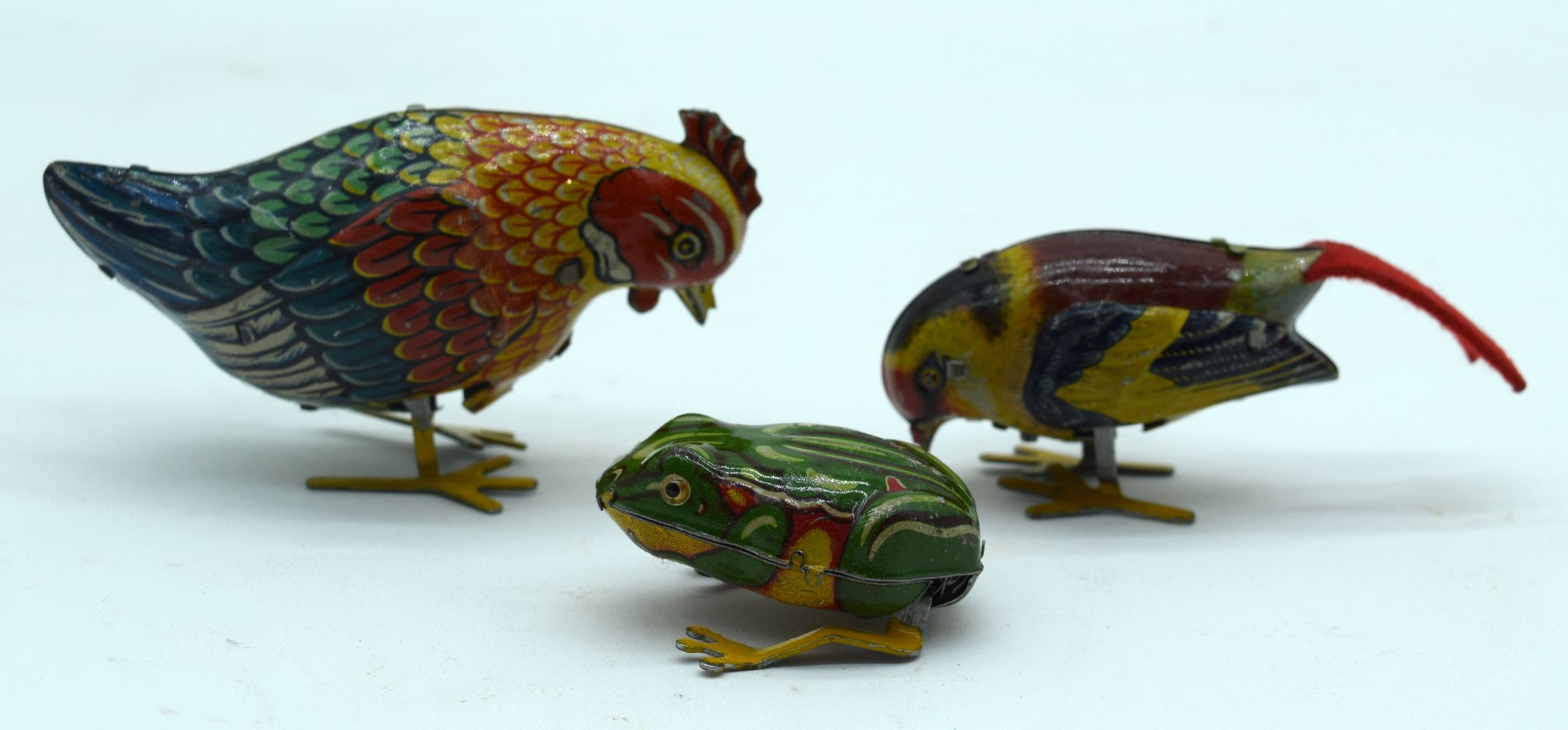 Lot 2546 Three vintage clock work tin birds 5cm (3).