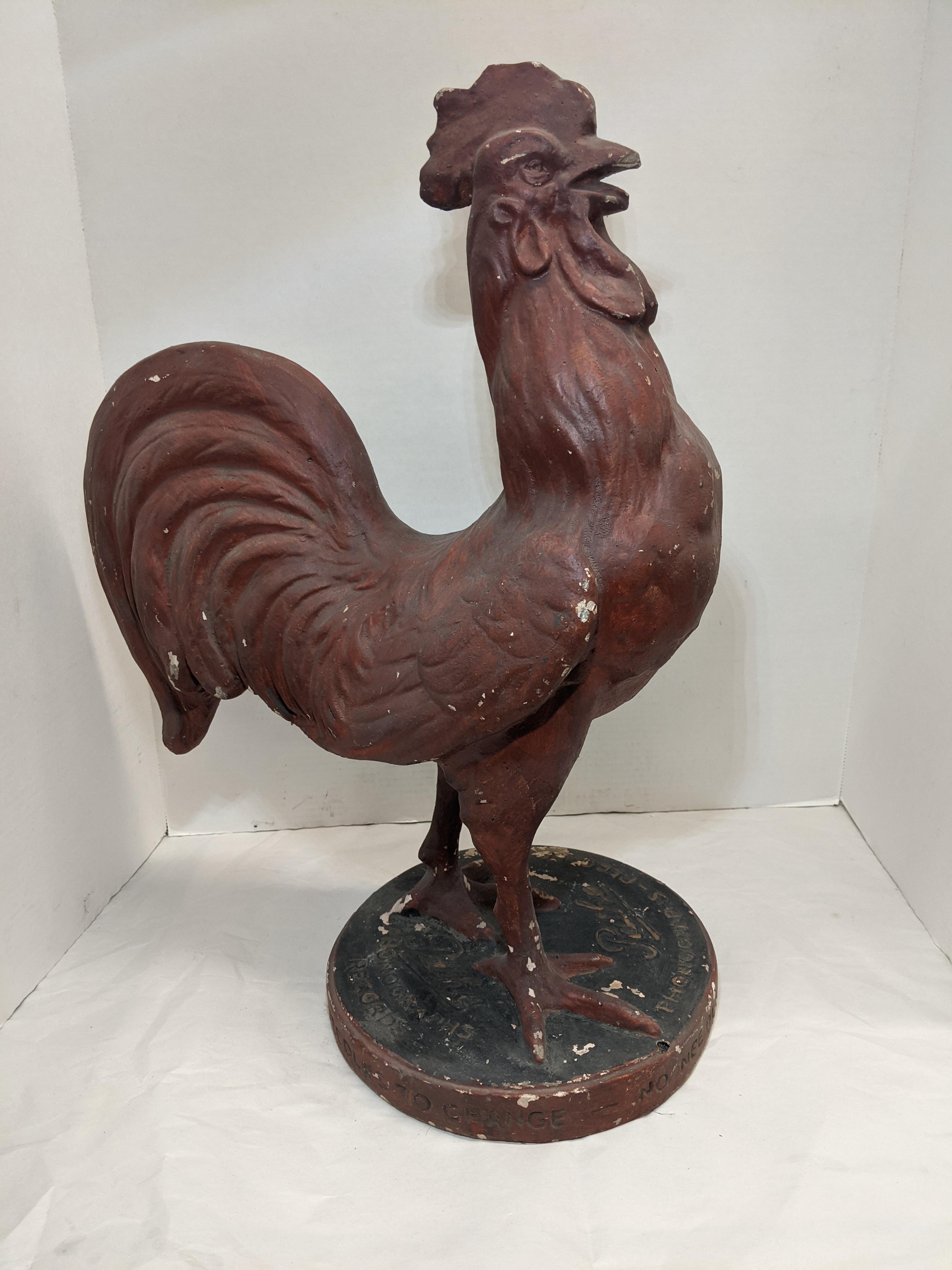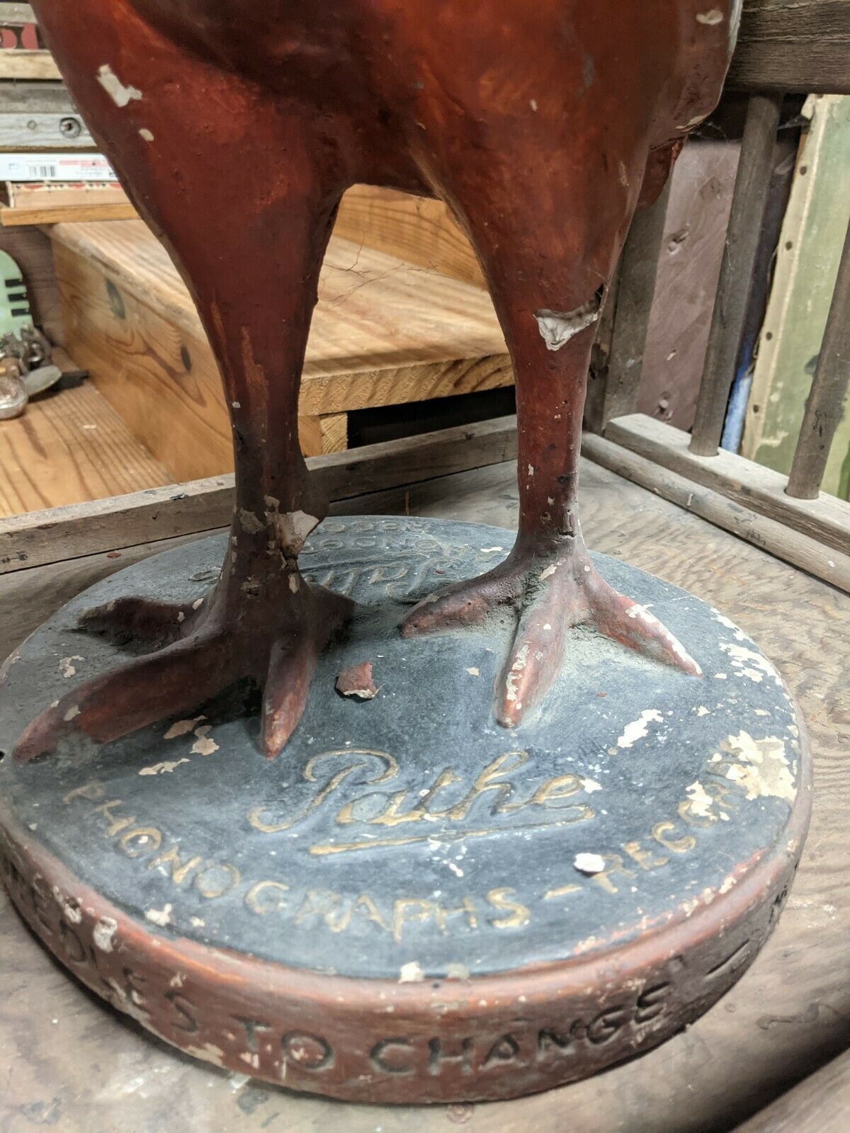 Several years ago I obtained a Pathé rooster store display that needed restoration. It had most of its original paint, so that helped determine the direction to go...