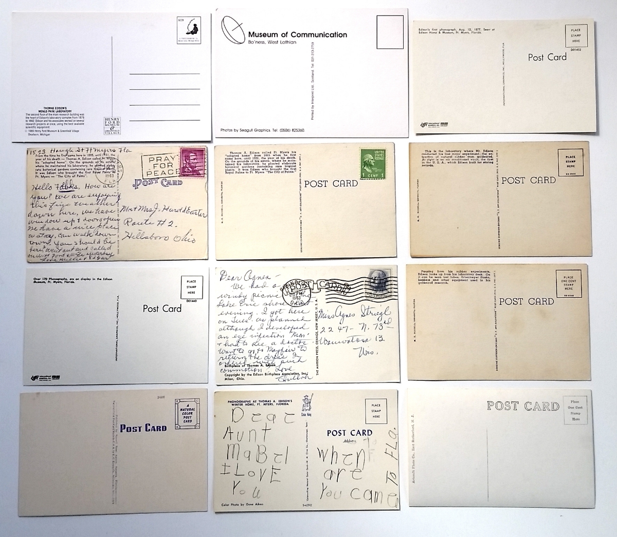 Here is a nice group of 12 Edison/Phonograph related post cards for sale as a lot. Most of the cards are in "like new" unused conditon. See photos of front and reverse sides. Price of $24.00 includeds shipping by first class mail to a U.S. address. Payment by PayPal Friends & Family preferred. Personal check O.K.