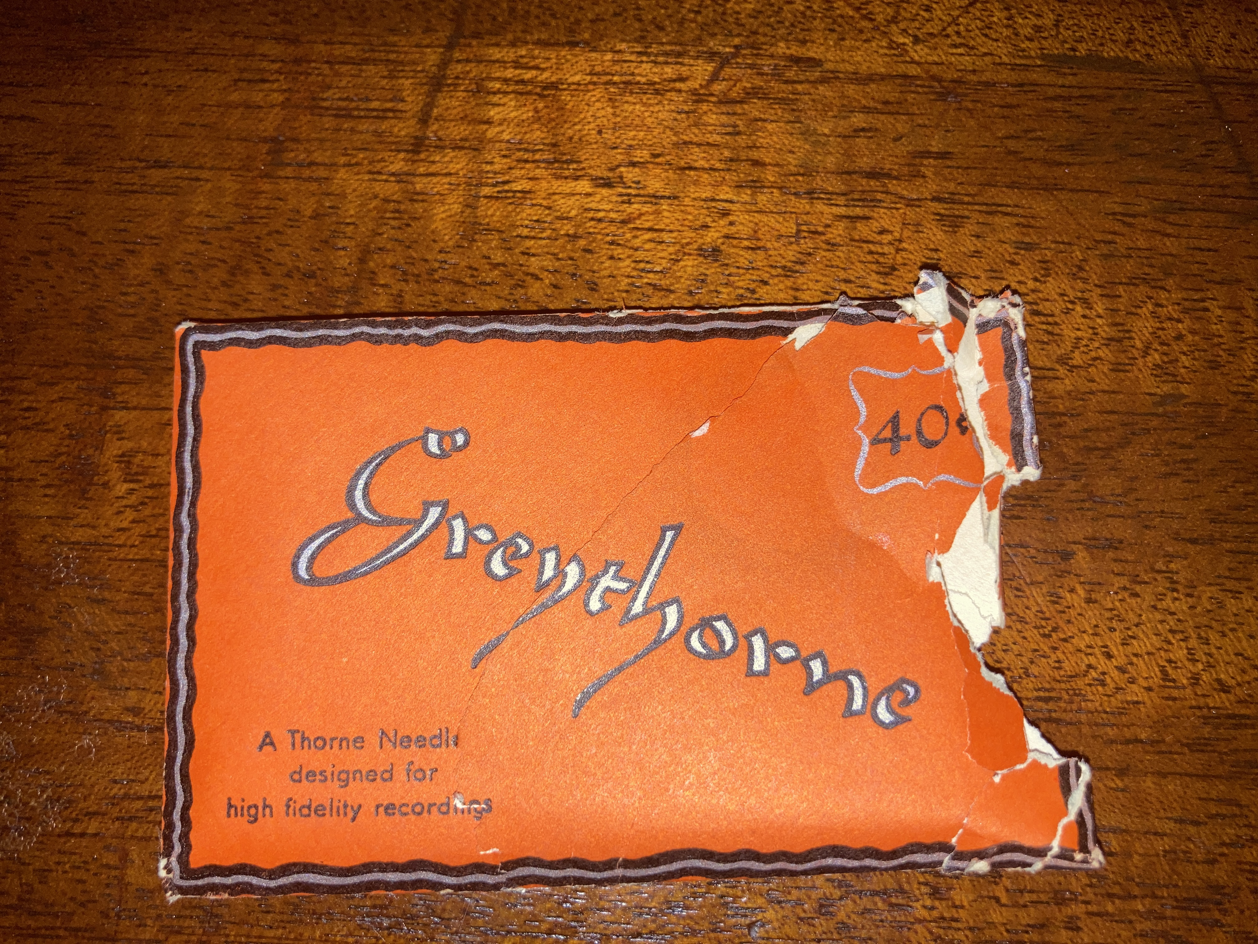 There's a fiber needle envelope in here as well as two very fragile Peter Grey company advertising leaflets explaining how to use fiber needles to make records last longer. The leaflets are printed on tissue paper and are still in marvelous condition for their age (1930s or '40s.)