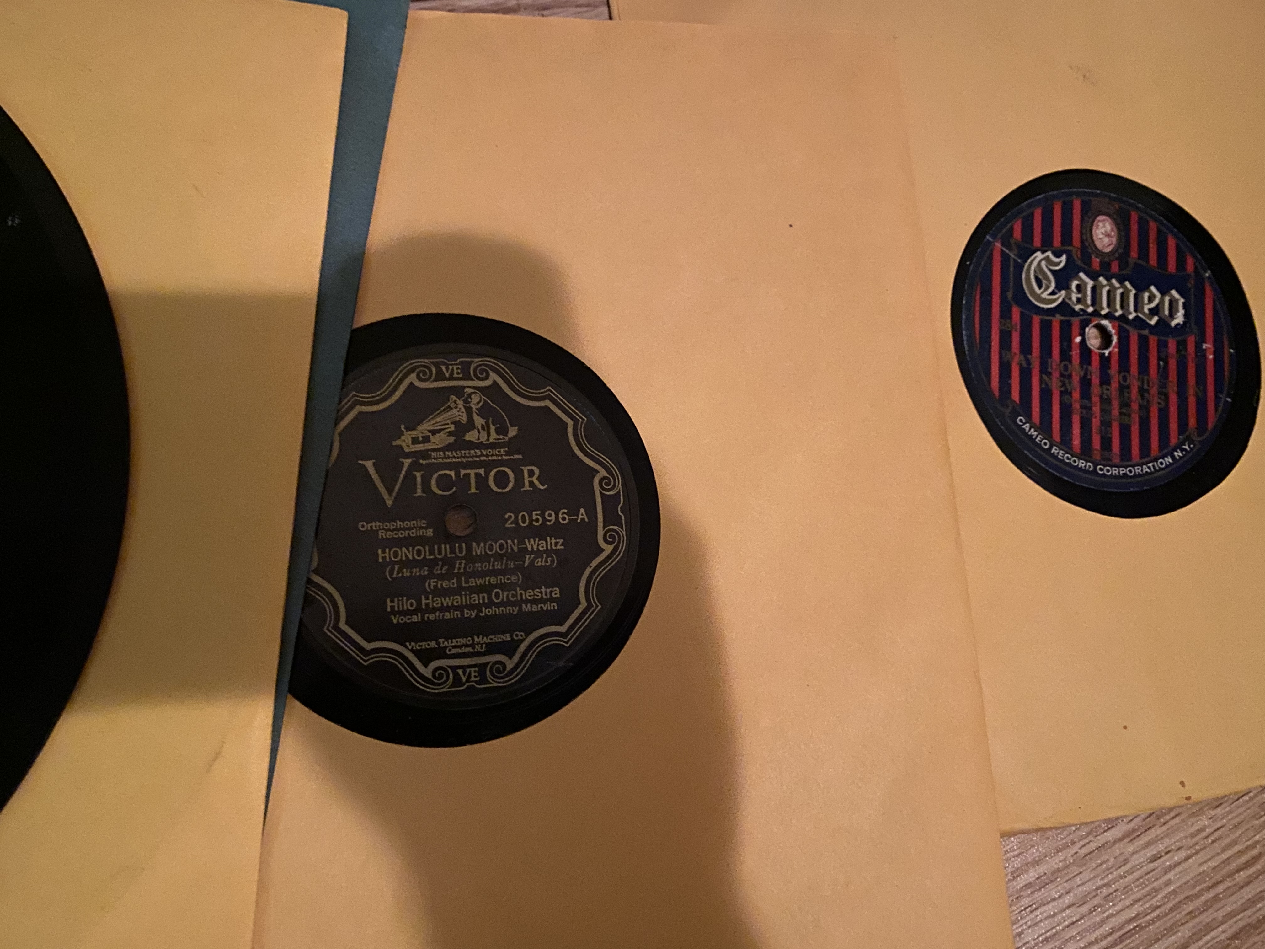 I am selling a stack of 30 early 78’s. I have played them, they are not mint copies, just some good old 78’s for playing. Most of the records are from the teens and twenties, maybe one or two early Columbia’s from the 1900’s.