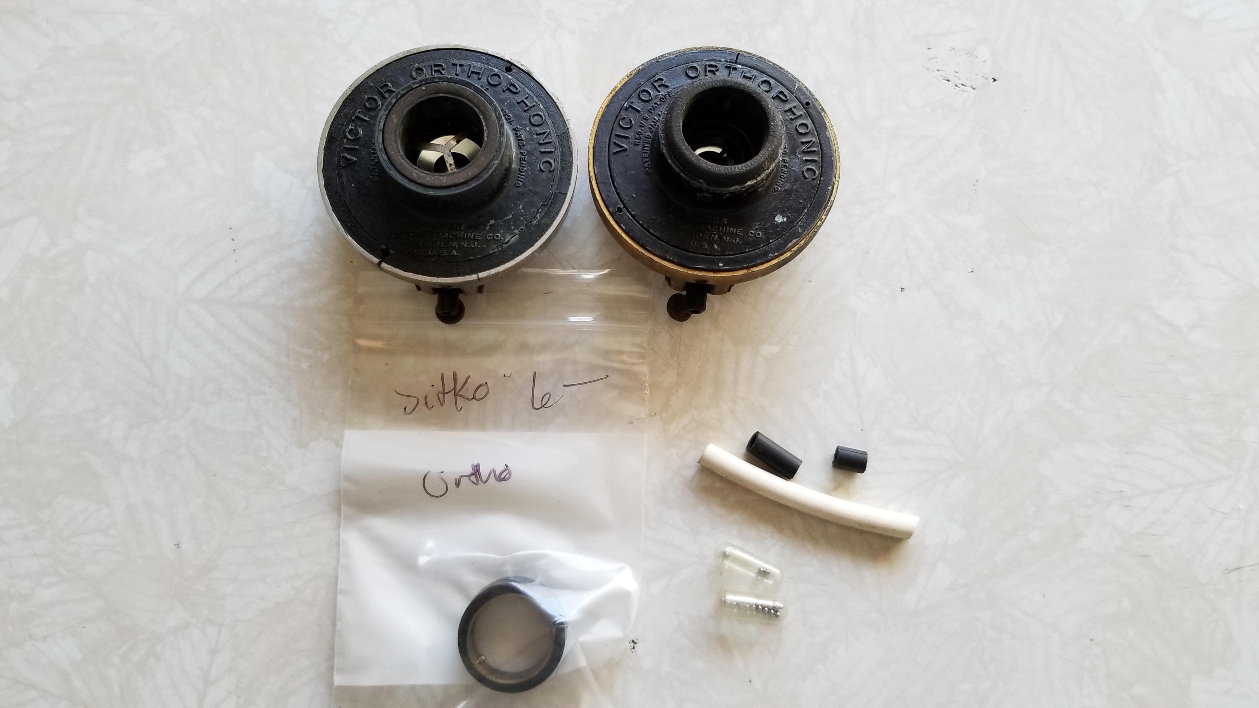 Im selling all I have left for Orthophonic reproducers. I no longer have an Ortho machine and have no use for these anymore. Both reproducers and the parts shown come all together, what you see if what you get. Asking $60 including Priority Mail within the US, and will only ship within the US. Payment via PayPal F&F works best. Thanks for looking.