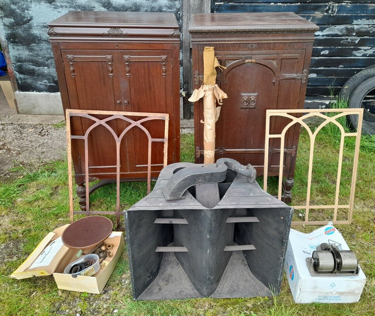 It is missing the tonearm, which is as hard to find as the horn. The problem with buying rare incomplete machines it that it may take years until you find the missing components. Alex, who is buiding his own DYI reeentrant horn, may want to sweet talk the owner into selling him the horn. The cabinets are too small for wardrobes, Roger, but as probably was the case in the above examples, they would make nice liquor cabinets. It is unfortunate, the 202 sounds almost as good as the best HMV/Experts.