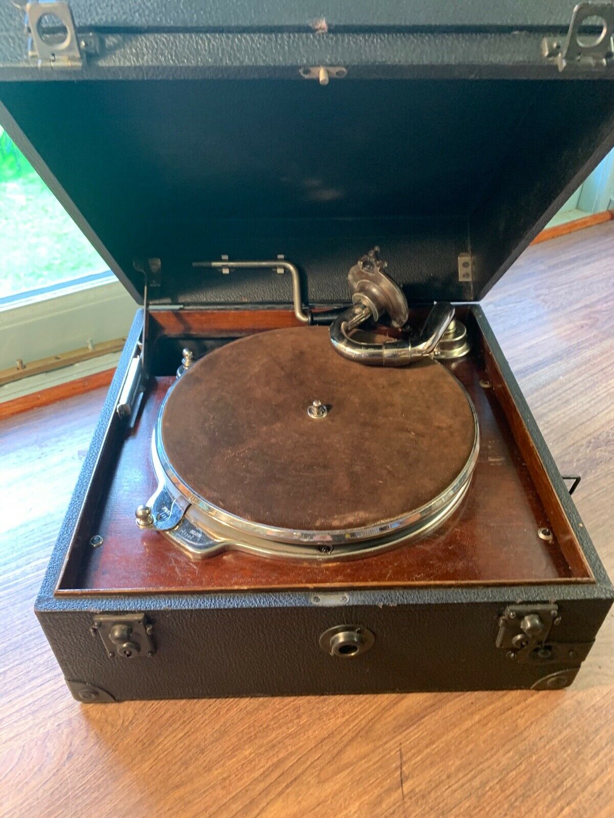 On second thoughts I think you're right, 10". Strange that it should obstruct the horn mouth so much.epigramophone wrote: Tue Jul 06, 2021 4:54 am Without knowing the dimensions of the case I cannot be sure, but it looks to me like a 10 inch turntable on (as Steve has pointed out) a Garrard motor plate and appears to be original to the machine. It is a pity there is no manufacturer's name on the case, but there might be on the soundbox.