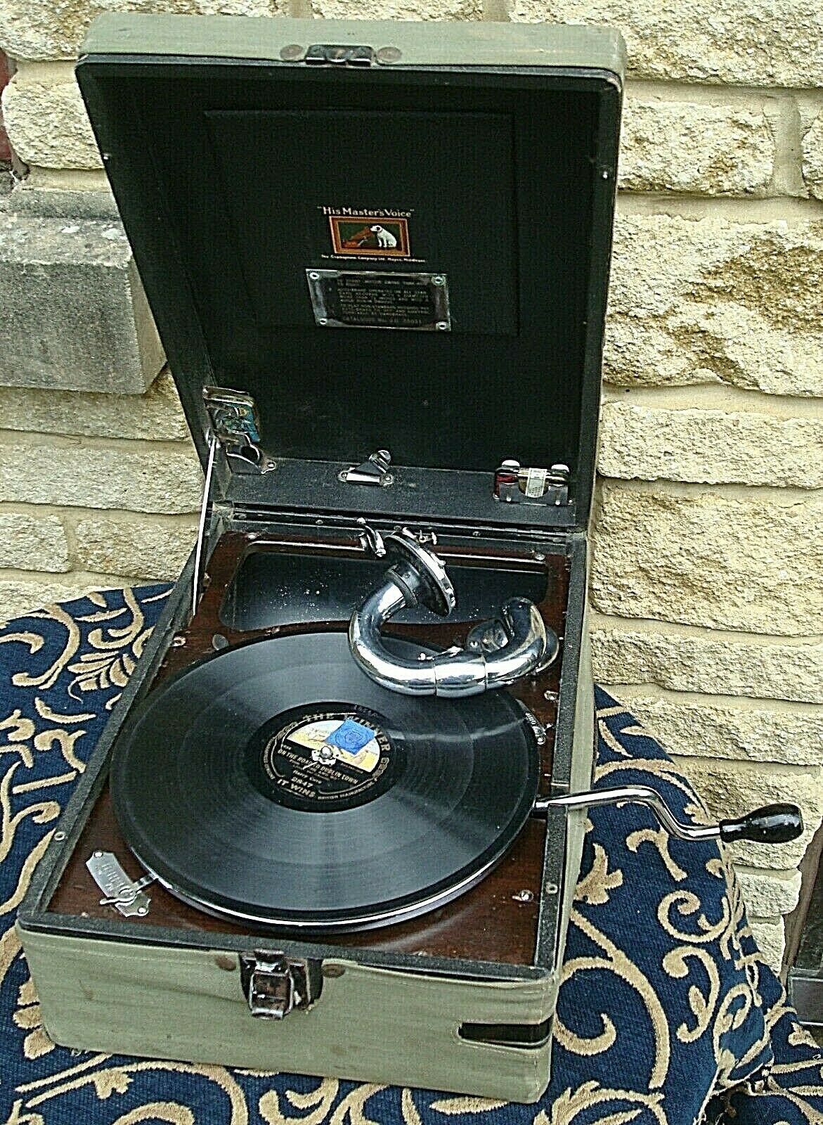 This HMV102D, one of the batch made for the Ministry of Supply, has the protective canvas case cover sold as an accessory.