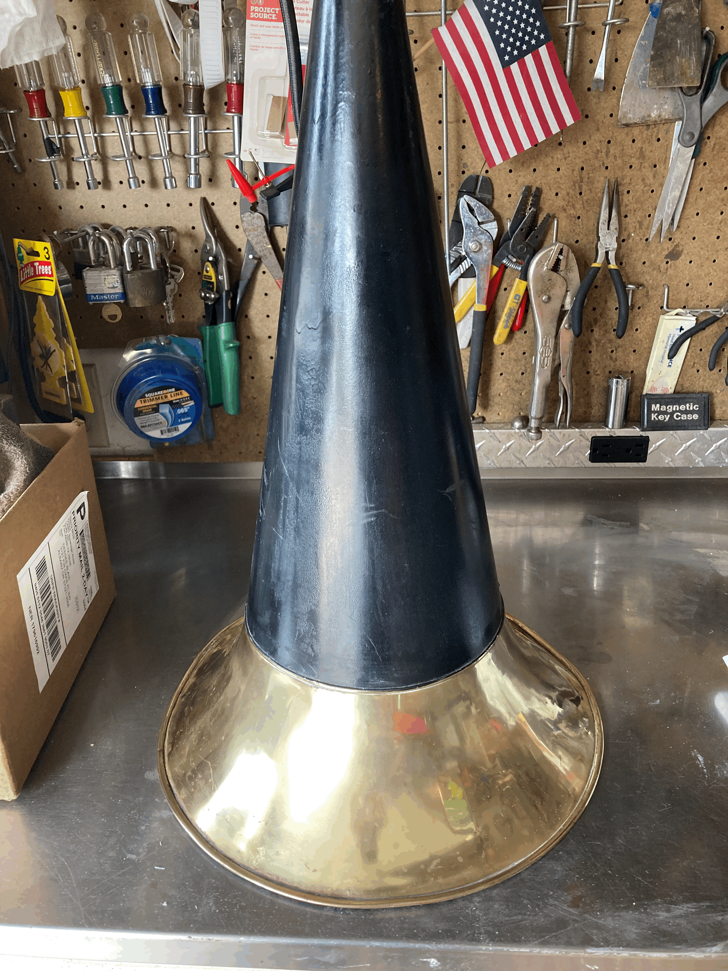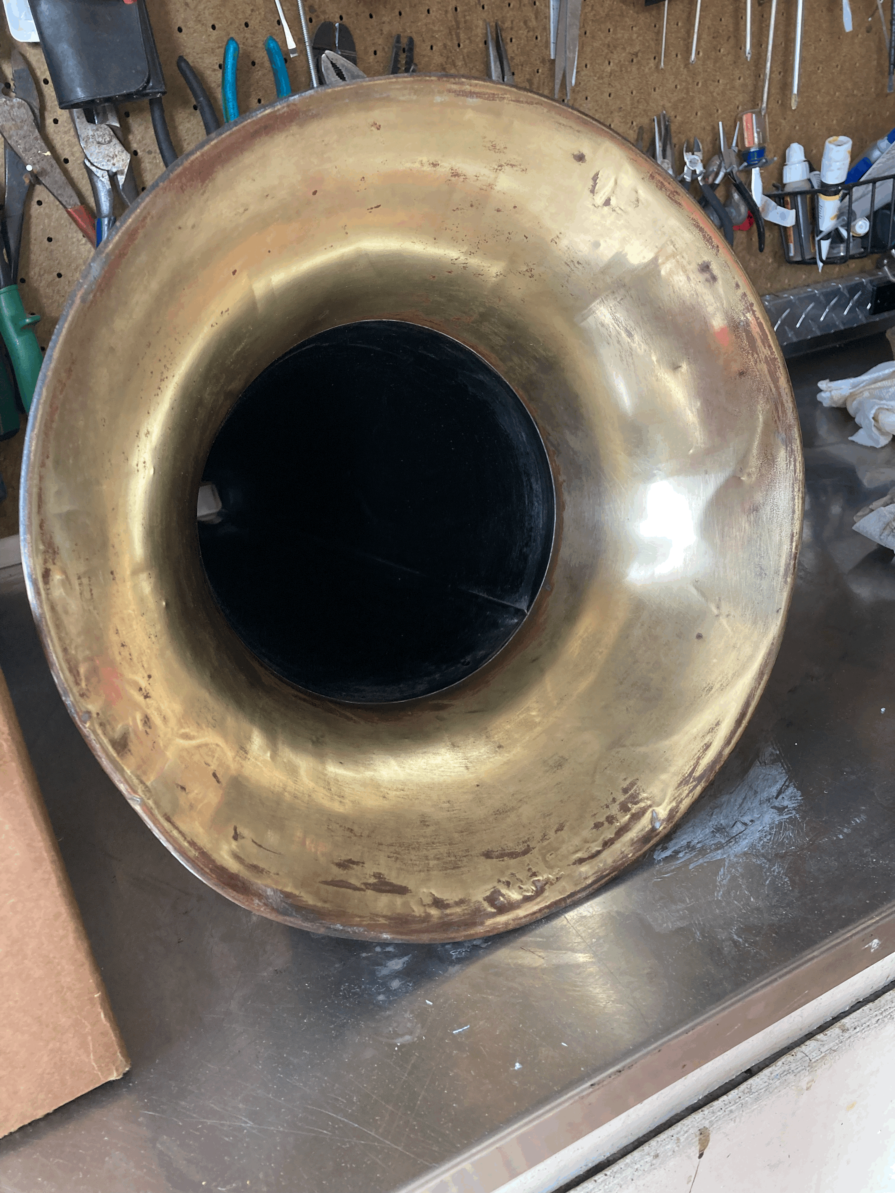 I am trying to get a Talk-O-Phone ready for the APS Expo. It's all ready except the polish on the brass bell. The outside is ok but I'm dying on the inside of the bell. I've used Brasso. I thought part of my problem might be that the brass was protected by lacquer but lacquer thinner had no effect. Any suggestions would be appreciated.