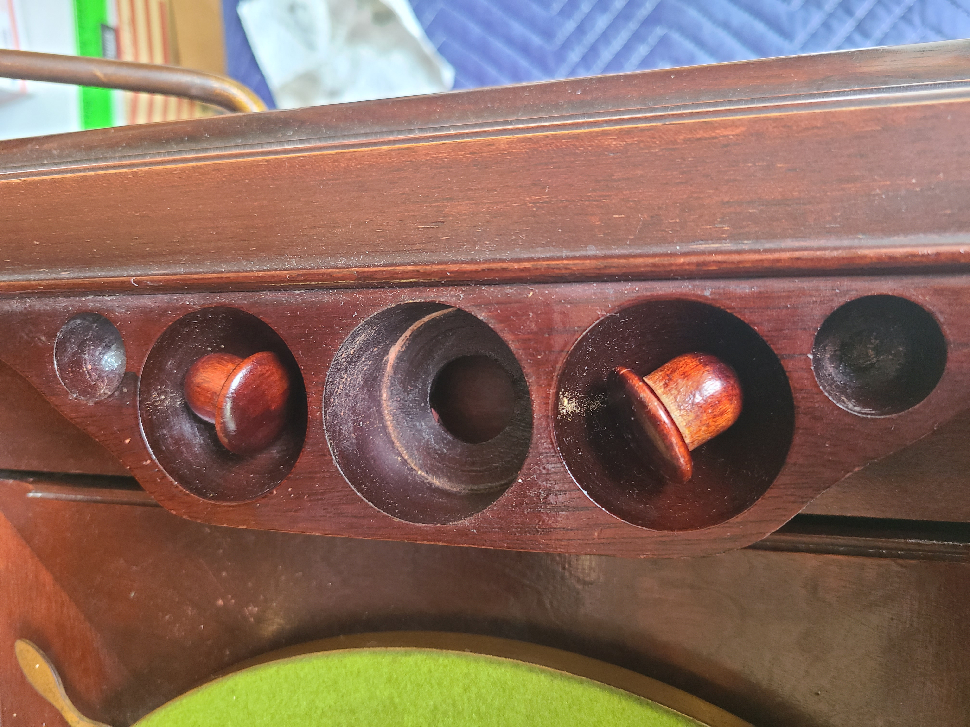 Strartgroove, any chance of posting a picture of the holes and plugs above the back door? Also, what are those holes for? (I'm not a Victrola owner)