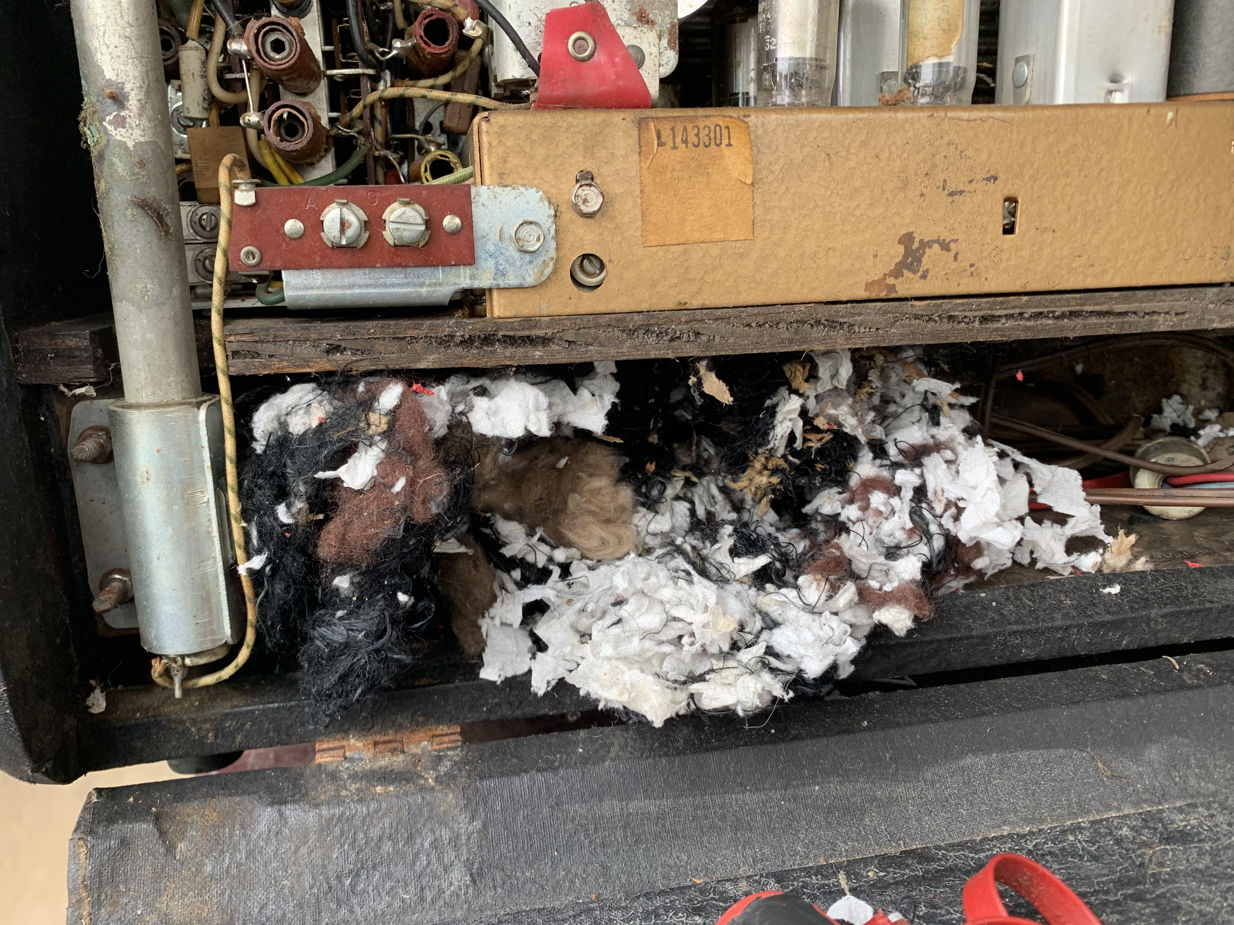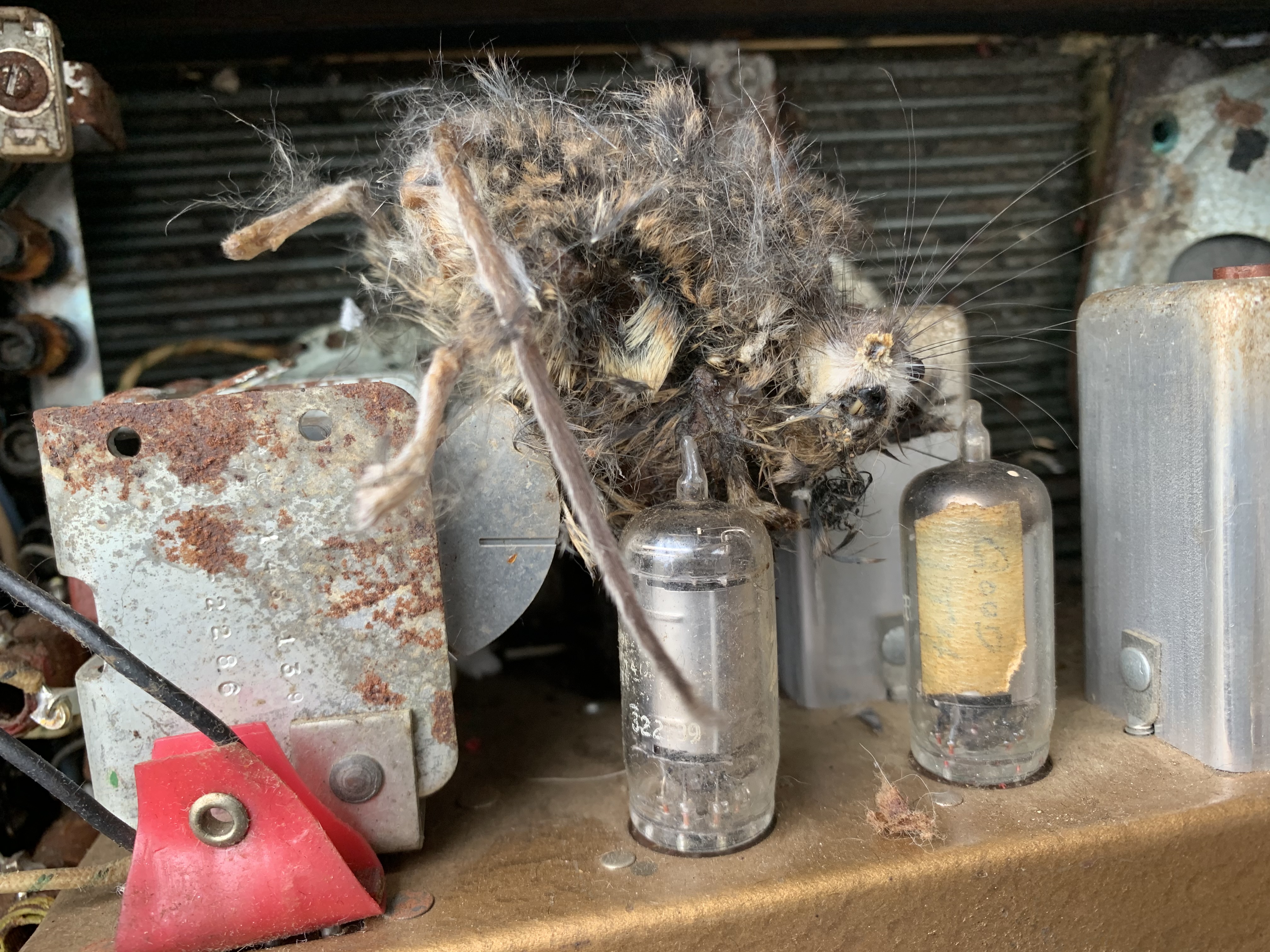 Maybe the rat died by electroshocking while trying to make his nest in the amp... Didn't he read the CAUTION warnings?