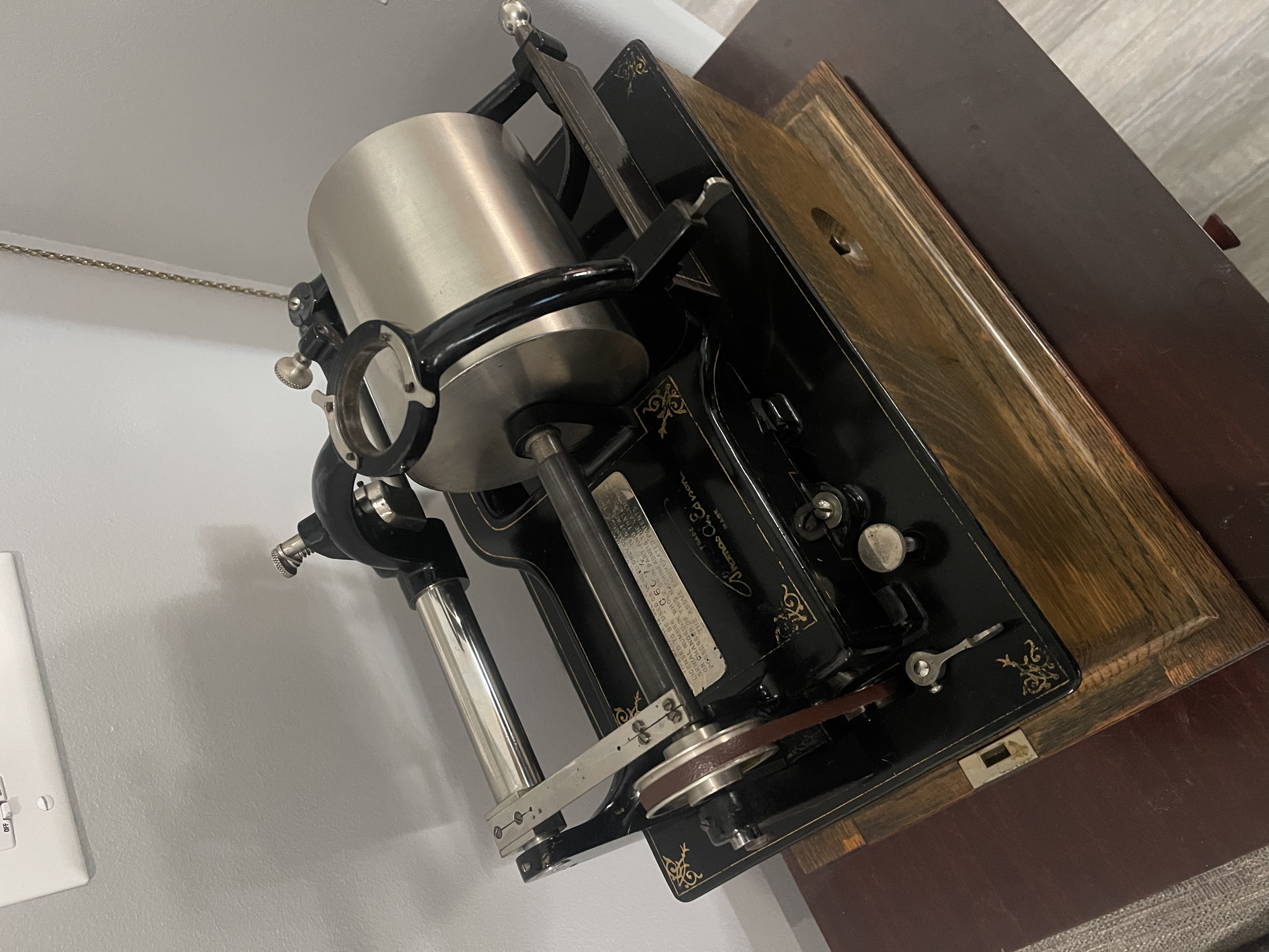 If just the machine is desired, it comes with an original seamless brass horn, a Model C converted to play like a D and plays 2 minute cylinders very well, the small mandrel (currently looking for it in the boxes), the small conversion carriage with original shaver and original cutting knife, the concert mandrel and concert carriage again with the cutting knife and blade intact, original crank, original Automatic Reproducer and Recorder all rebuilt with glass diaphragms and new needle/cutting stylus, and all extra parts to change from concert to standard cylinders. I rather not ship, so if you’re coming through Louisiana or Texas I’d be more than happy to meet with you or someone you send or know.
