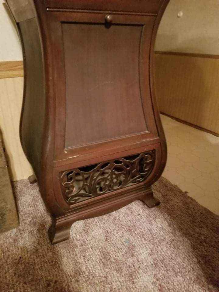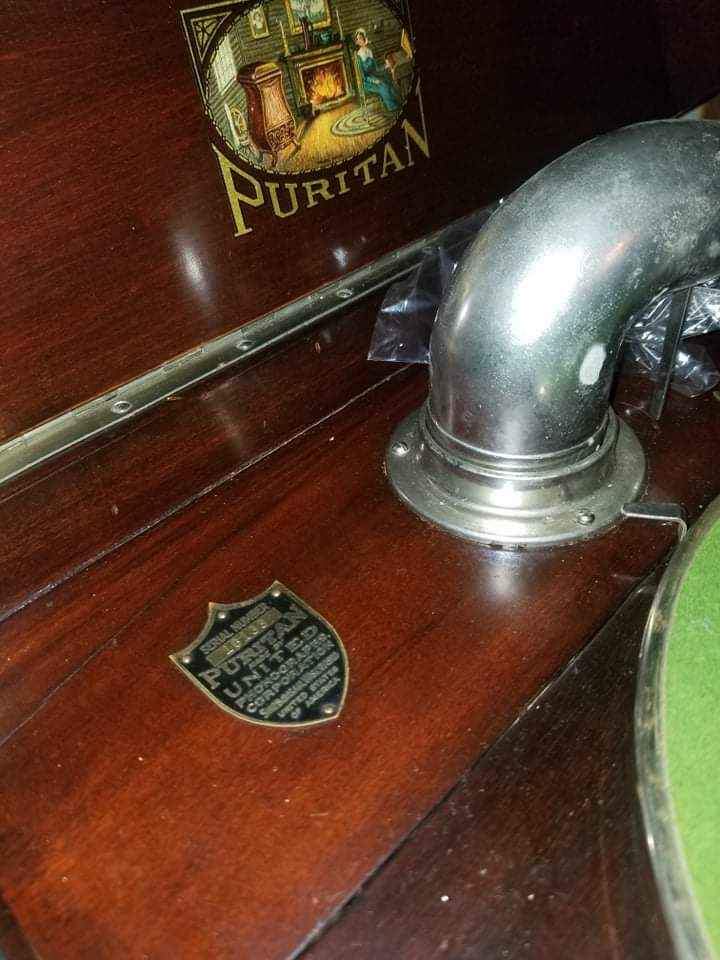 Interesting to note the minor variations in these Puritan machines. Mine was badged "La Vogue" on the needle cup block, and the metal fittings were all gold, except (curiously) for the lid hinge. There may have been an issue with the camera angle with this Facebook machine, but mine was more widely flared at the lower section. The legs were more delicately shaped with a carved curlicue on the corners, and the top of the corner posts (where it meets the lid frame) likewise had a carved curlicue. It had survived in really good condition over the years, and cost a lot (to me) in 1983 when I bought it. As such I never quite dared tinker with it or do much other than motor lubrication, the reproducer gaskets were the originals. Even so, it sounded rather good right out of the shop. I just sold i last year to a younger collector, I just decided it was time to pass it along to the next generation. I played it for the new owner and we noted how the low placement of the horn resulted in a "diffused" sound, much as you experience with the Victrola Revere, with its downward facing horn.