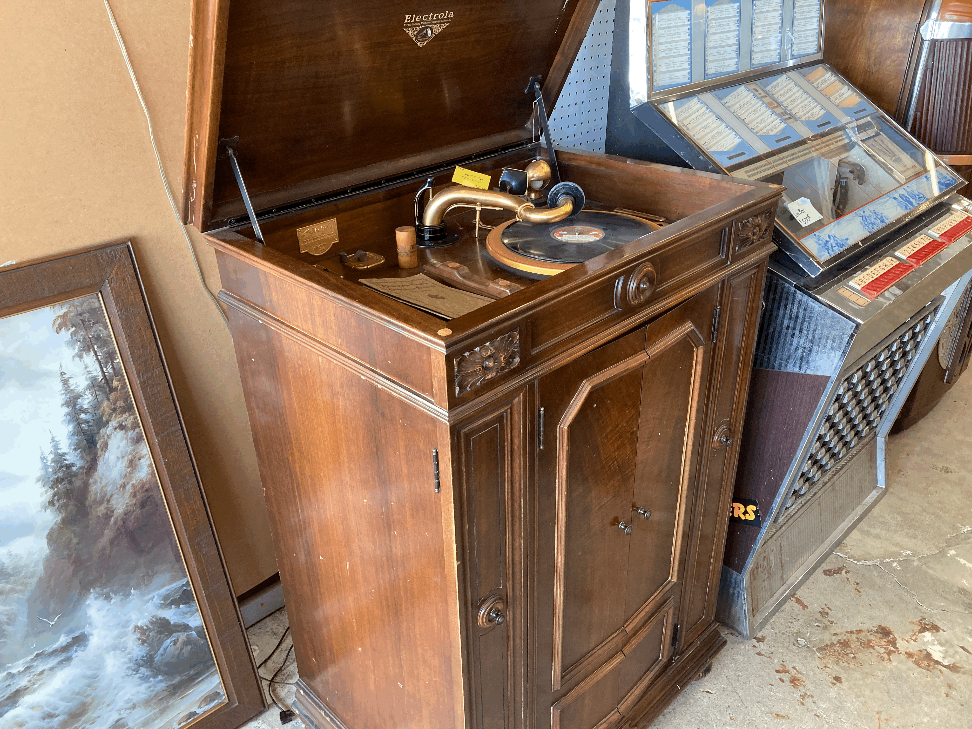 More like "Lucky for us, you're NOT in Oregon"...Curt A wrote: Wed Sep 01, 2021 11:12 pm That is a really odd machine with both acoustic and electronic reproducers, along with a tube amp... If the amp works it's definitely a bargain, if not you can still play it acoustically. Too bad it's in Oregon...