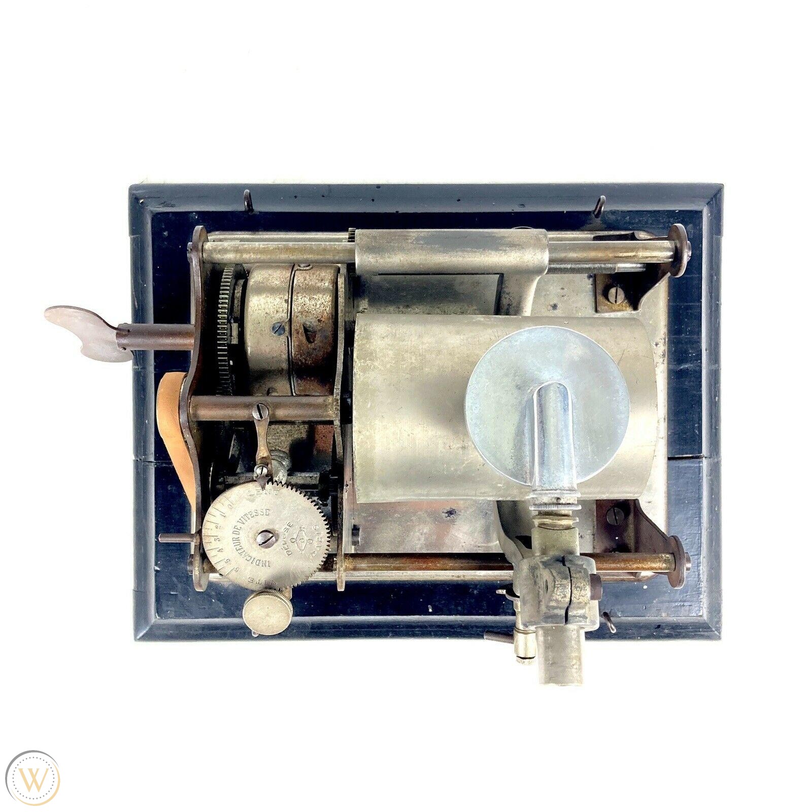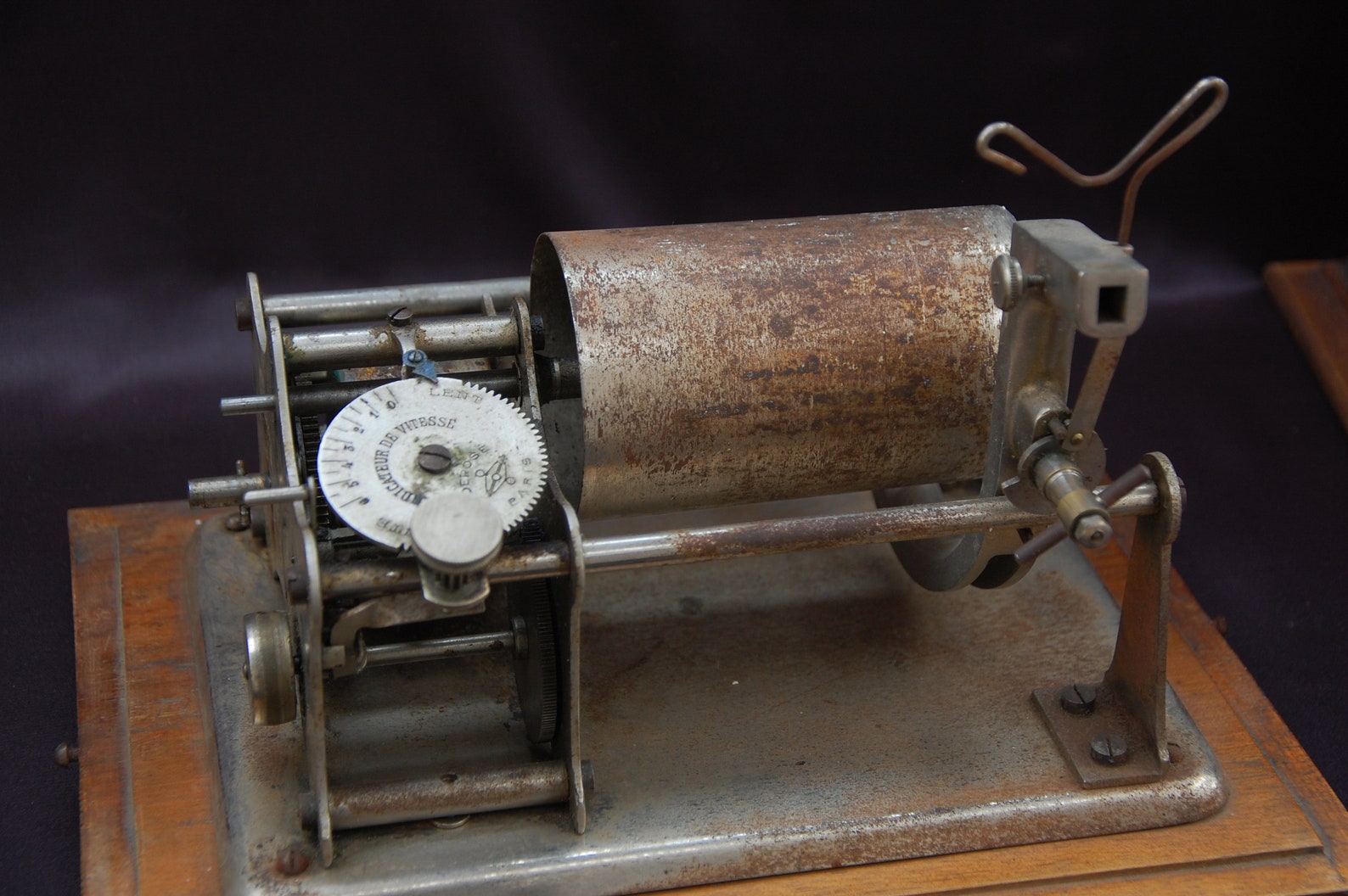 The wording in French for "Speed Indicator" also hints at marketing and use locally rather than for export. The mandrel is a special size (diameter) just under the more typical Pathé Salon/Inter. It was widely advertised in France. I don't think that this Phenix configuration was of the moulded variety so that may have hastened its demise.