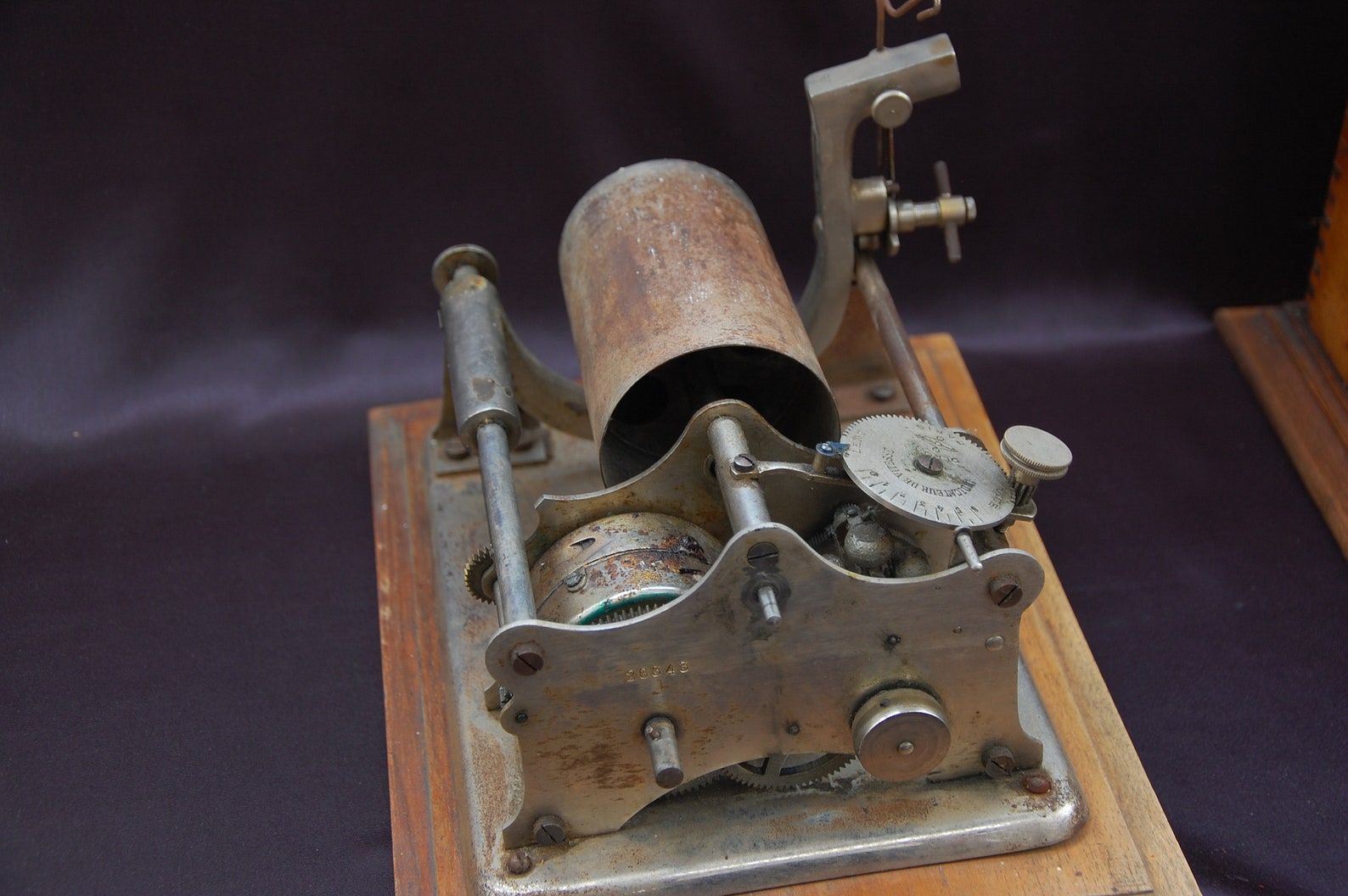 This is advertised as a phonograph, but the pictures don't make sense. It looks like a french cylinder machine, but if it is, what is missing and how would it operate?