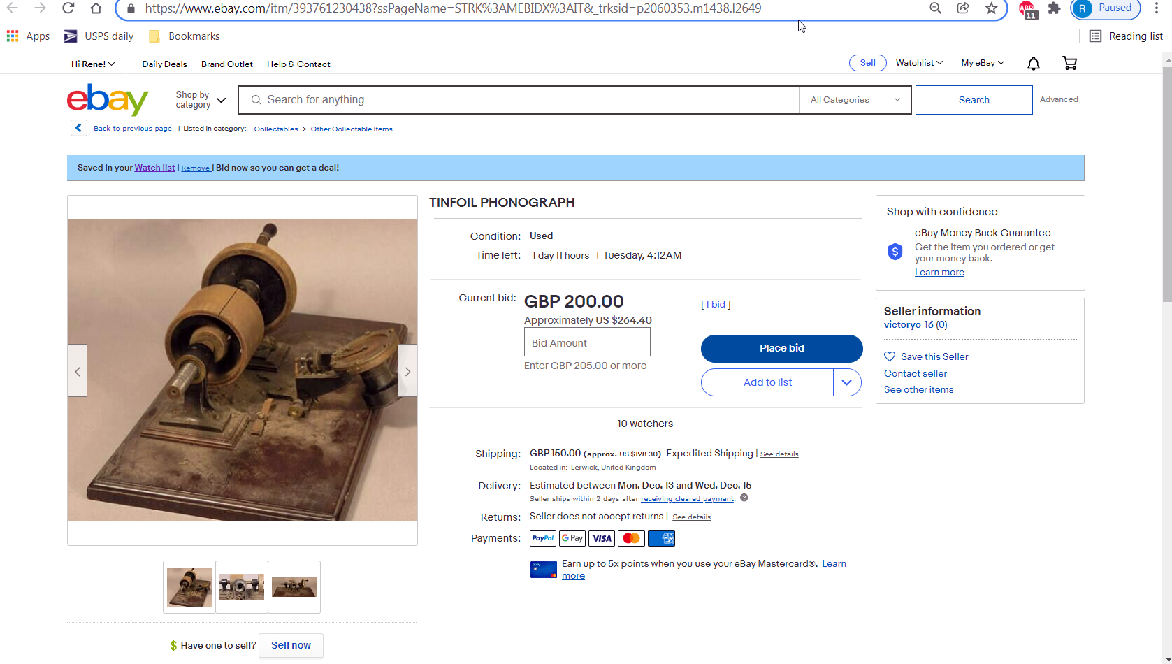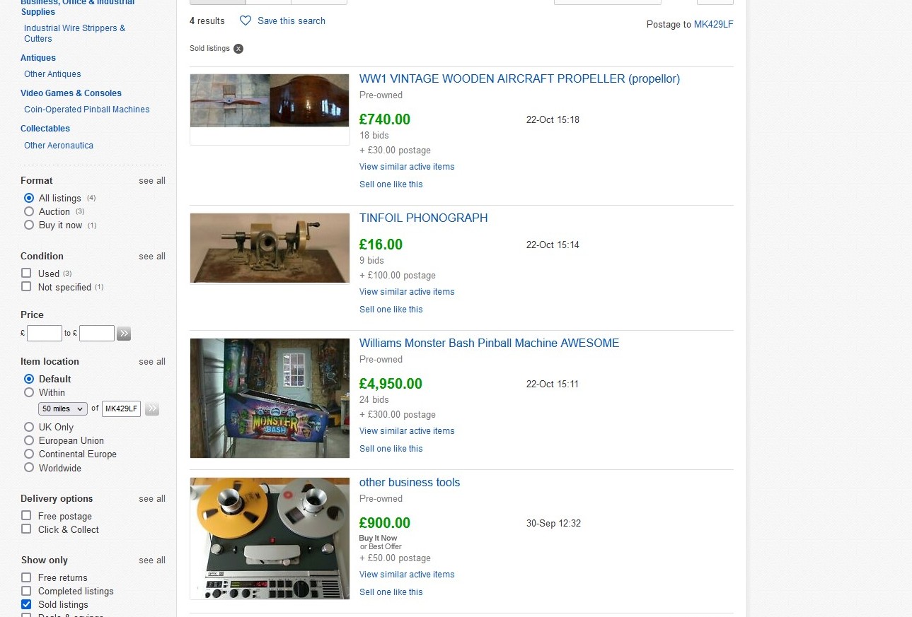 It seems evident that phonograph collectors were quick to determine that the tinfoil was a scam listing, since the closing price is ridiculously low even for a replica. I feel bad for the bidders on the other listings. Hopefully they'll be covered by Paypal or their credit card issuer.